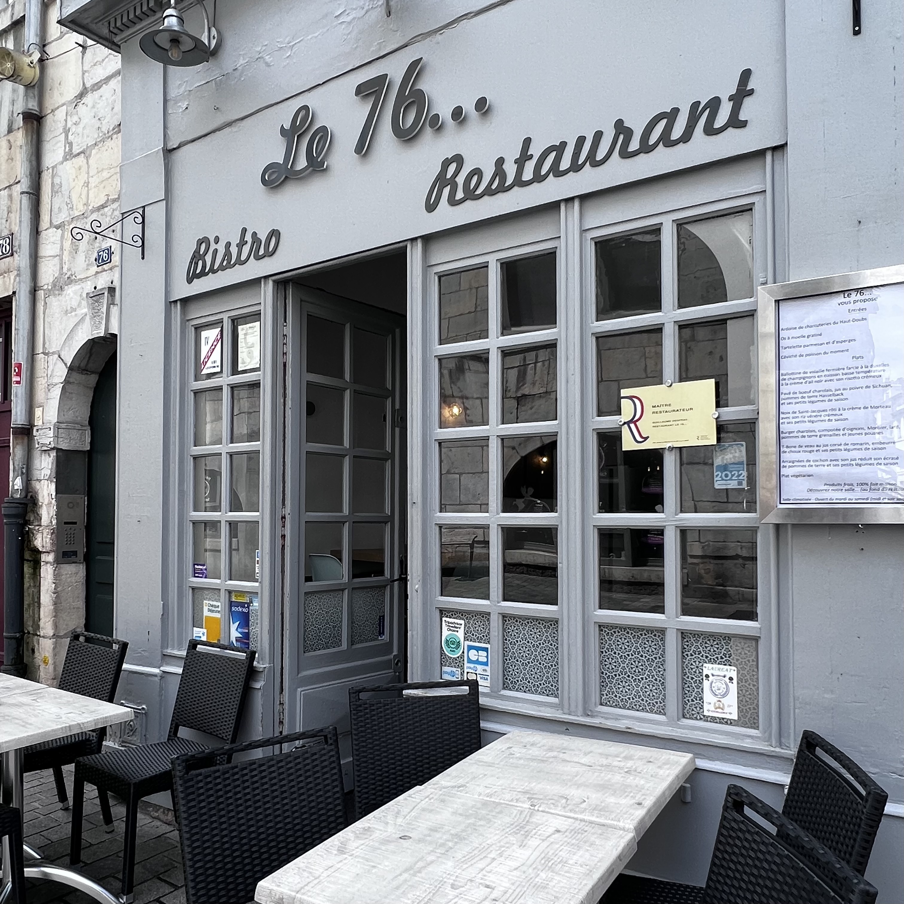Un beau restaurant à Besançon situé au 76 rue des Granges. Avec Une carte ou tout est fait maison... Une équipe de passionnés avec Johnny au fourneau. Nous sommes venus en famille et chacun à dégusté un plat différent, succulent… MERCI a toute l’équipe du 76