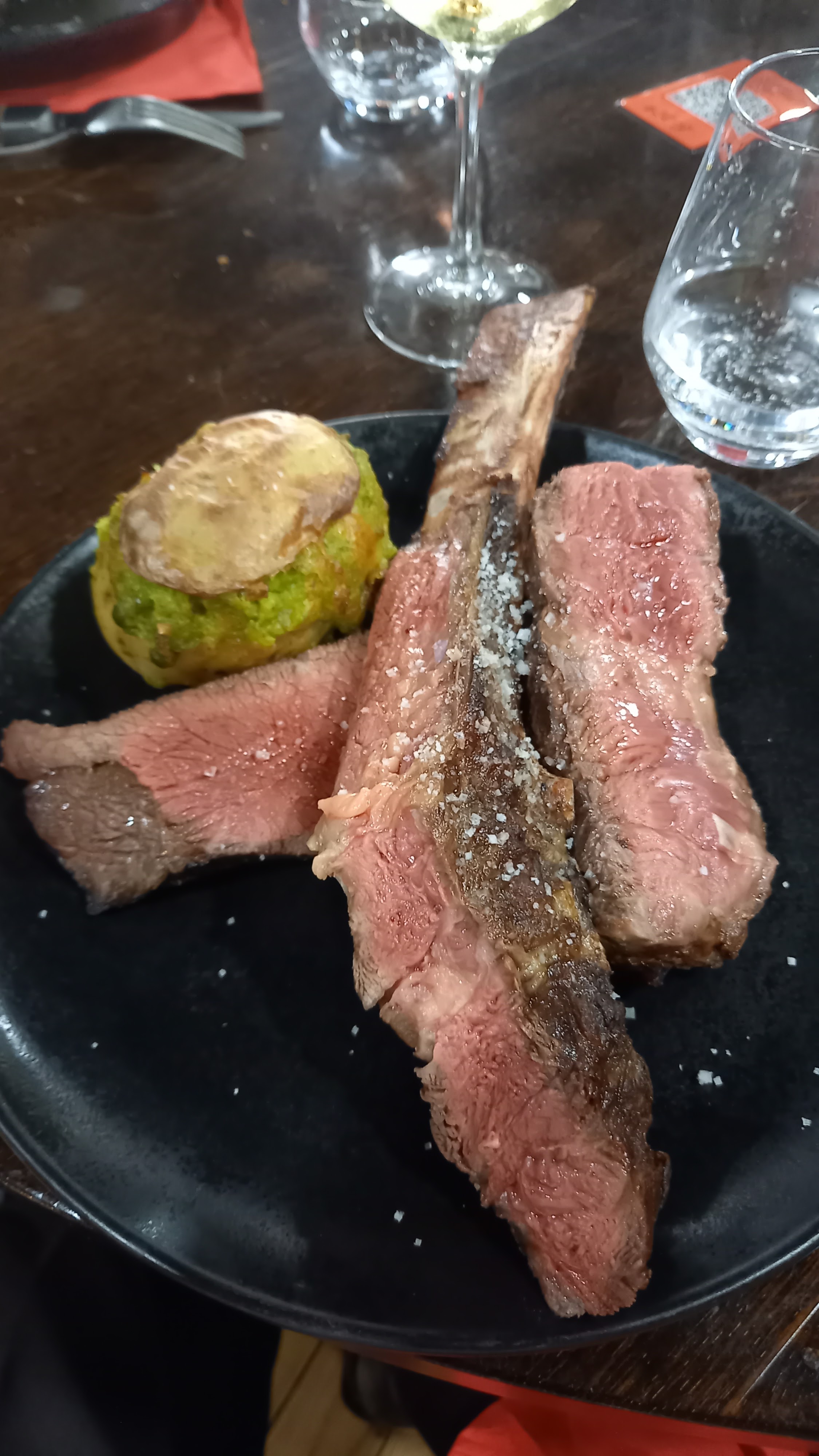 La cote de bœuf un délice!! Et une superbe cave à vin!! Merci Nono!
