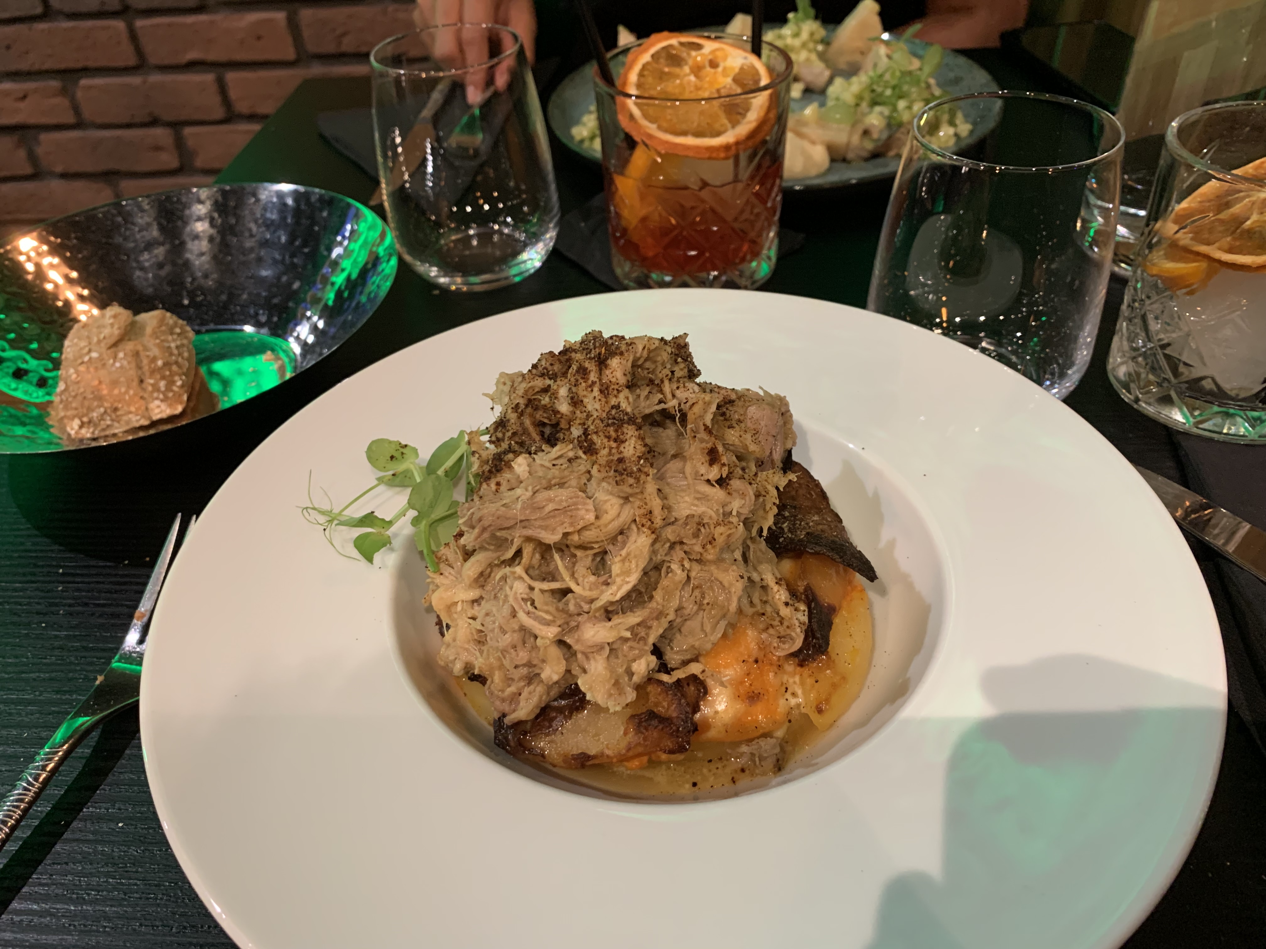 Un dîner à 8 dans ce lieu avec de l'espace, une lumière tamisée, et une déco originale , nous avons opté pour le saumon avec purée de céleri et le poulet à la purée de patate douce. Très belle présentation dans l'assiette, plat succulent, et service excellent et à notre écoute. Je recommande