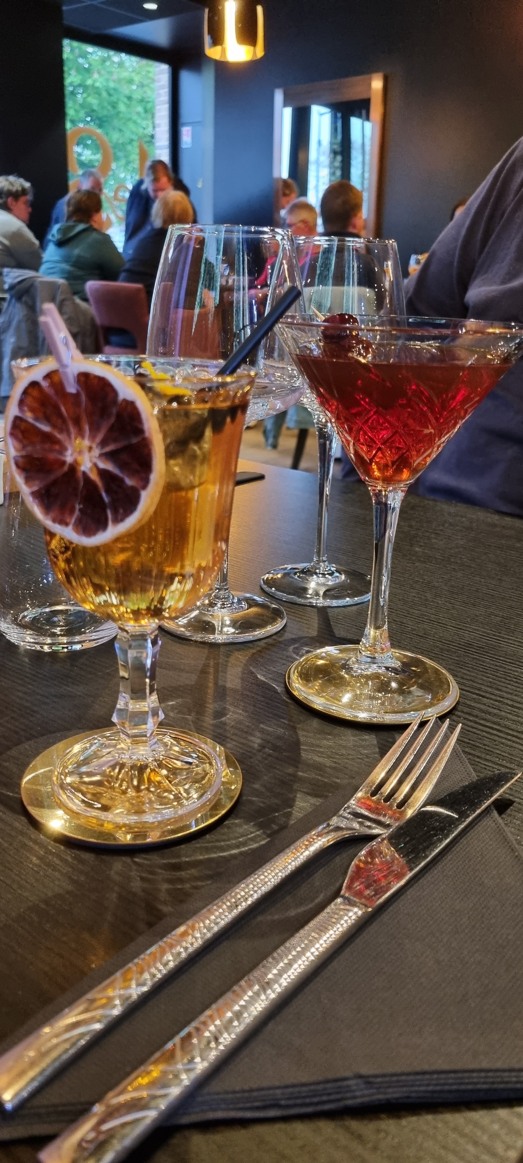 Nombreux choix de cocktails dont des créations qui changent des classiques, belle ambiance. Plats savoureux (supreme de poulet et risotto champignons / viande maturée frites maison), on avait même plus faim pour un dessert.