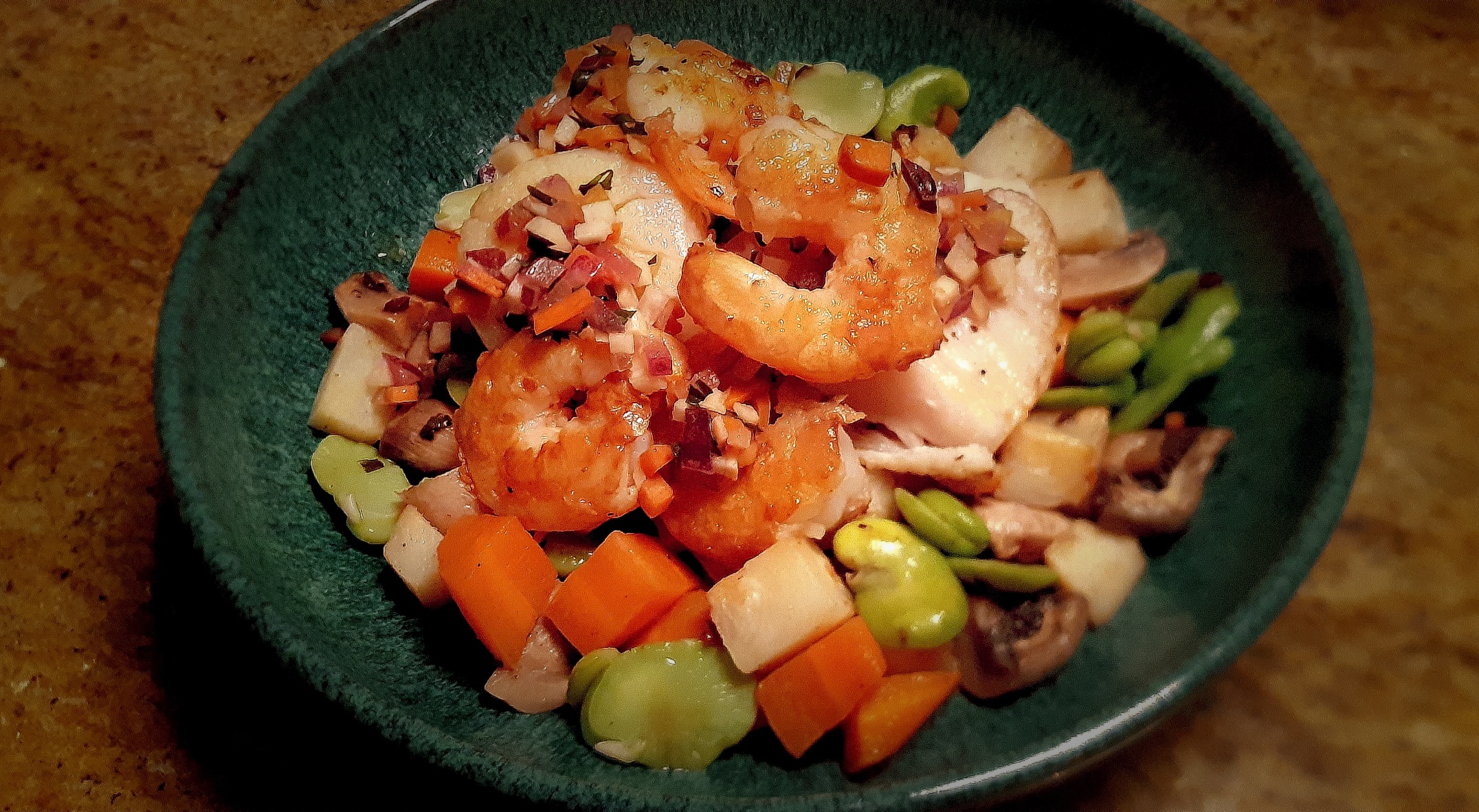 Quel bon menu .Gaufre de gésier, effiloche de canard salade verte un régal et un risotto de gambas sublime pour finir une profiteroles Miam-miam. On reviendra...