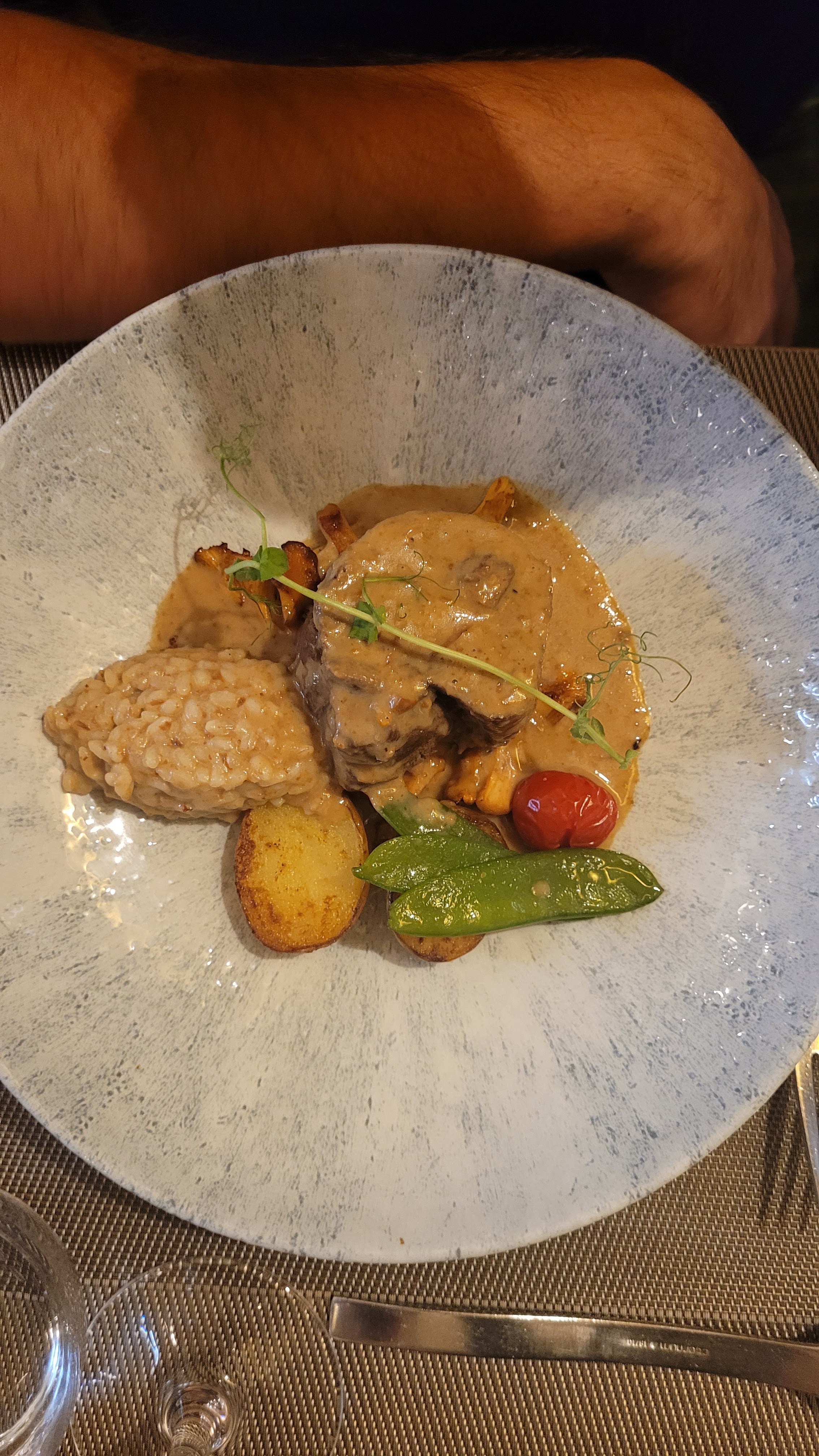 Cadre chaleureux et confortable, avec un excellent service et une superbe expérience culinaire de premier ordre. Le cabillaud de mon ami et mon beouf étaient parfaitement cuisinés et astucieusement présentés avec de délicieux mélanges de légumes et de fruits. Nous avons savouré chaque bouchée.
