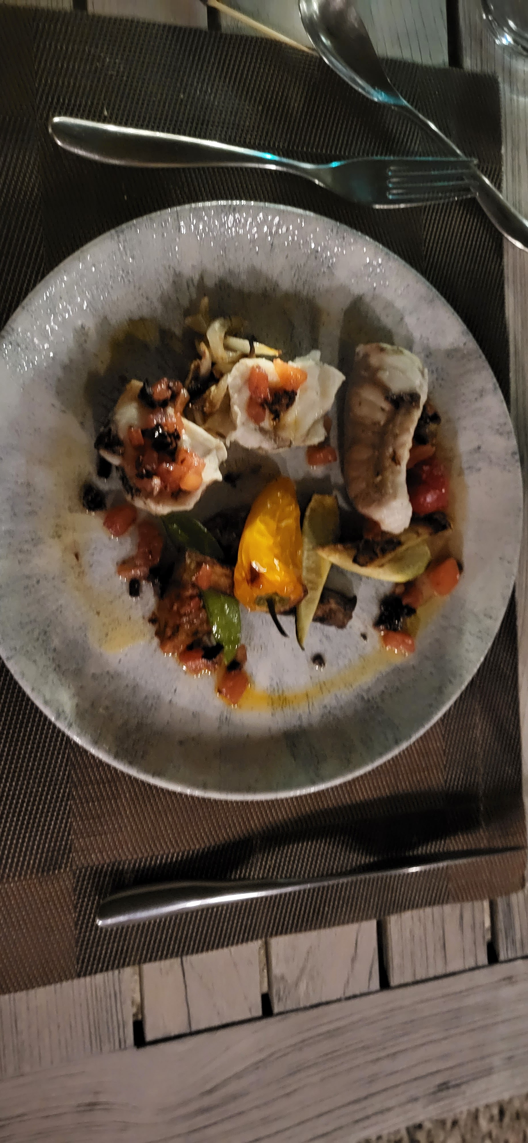 Nous avons apprécié un délicieux dîner. Nous avons pris 2 menus différents, avec des assiettes de poisson, de viande et de légumes. Le vin était très bon aussi. Les desserts très frais et sucrés. Le restaurant dispose d'une terrasse devant. Nous étions sur la terrasse et c'est comme un petit paradis paisible !