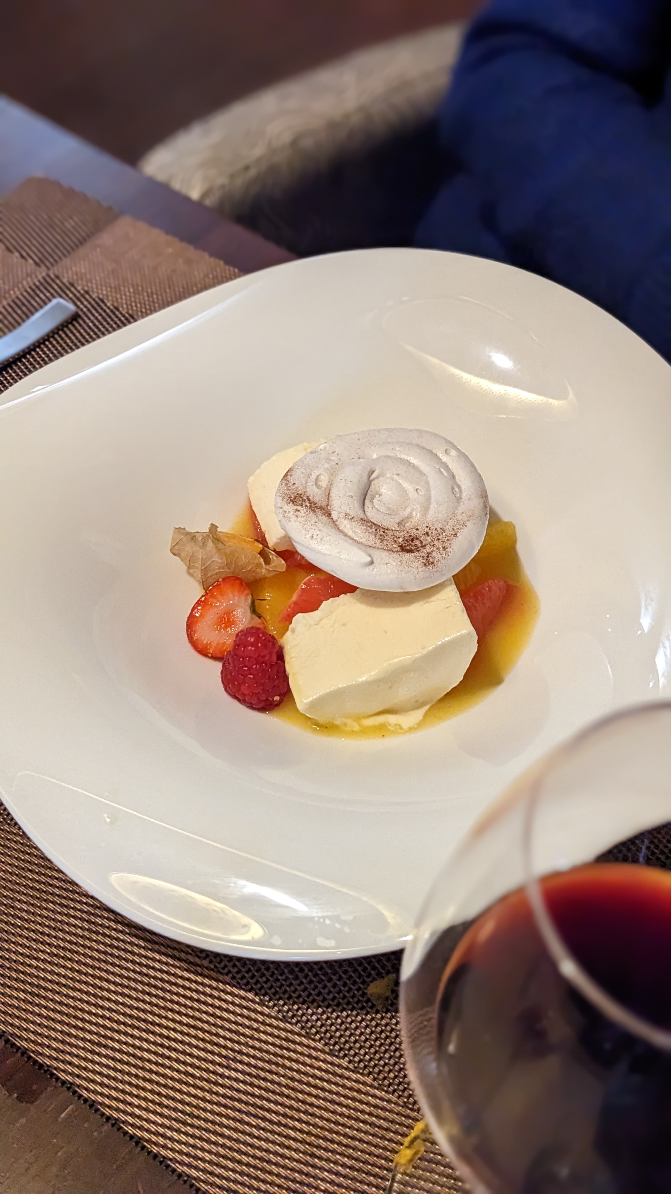 Nourriture très savoureuse et bon vin J'ai mangé ici par hasard. C'est très agréable de s'asseoir à l'intérieur et à l'extérieur. Service très sympathique et chaleureux. La nourriture était préparée à la perfection et était délicieuse. Nous avons mangé du poisson et de la viande, des entrées et des desserts. Tout était très bon, même comparé aux autres restaurants d'Uzès et de la région. Très bonne sélection de vins et parfaitement tempérés. Avec plaisir encore. Malheureusement, seules des photos des desserts ont été prises.
