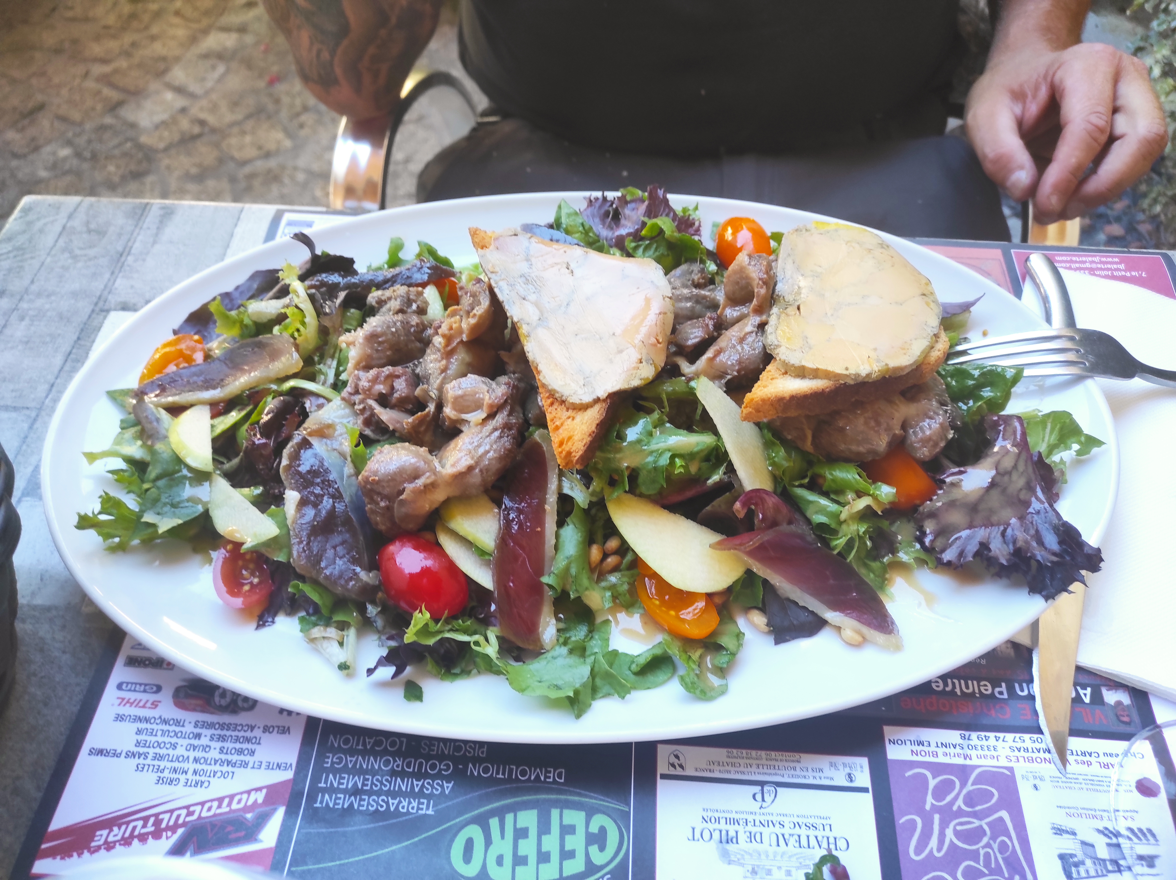 The place to be pour les amoureux de bonne bouffe gastronomique du Sud Ouest et bien copieuse ! Une salade Périgourdine monstrueuse avec des gésiers succulents, tartines de foie gras en veux tu en voilà. Un accueil super chaleureux et service impeccable, rapide, et avec le sourire 👌🏻
