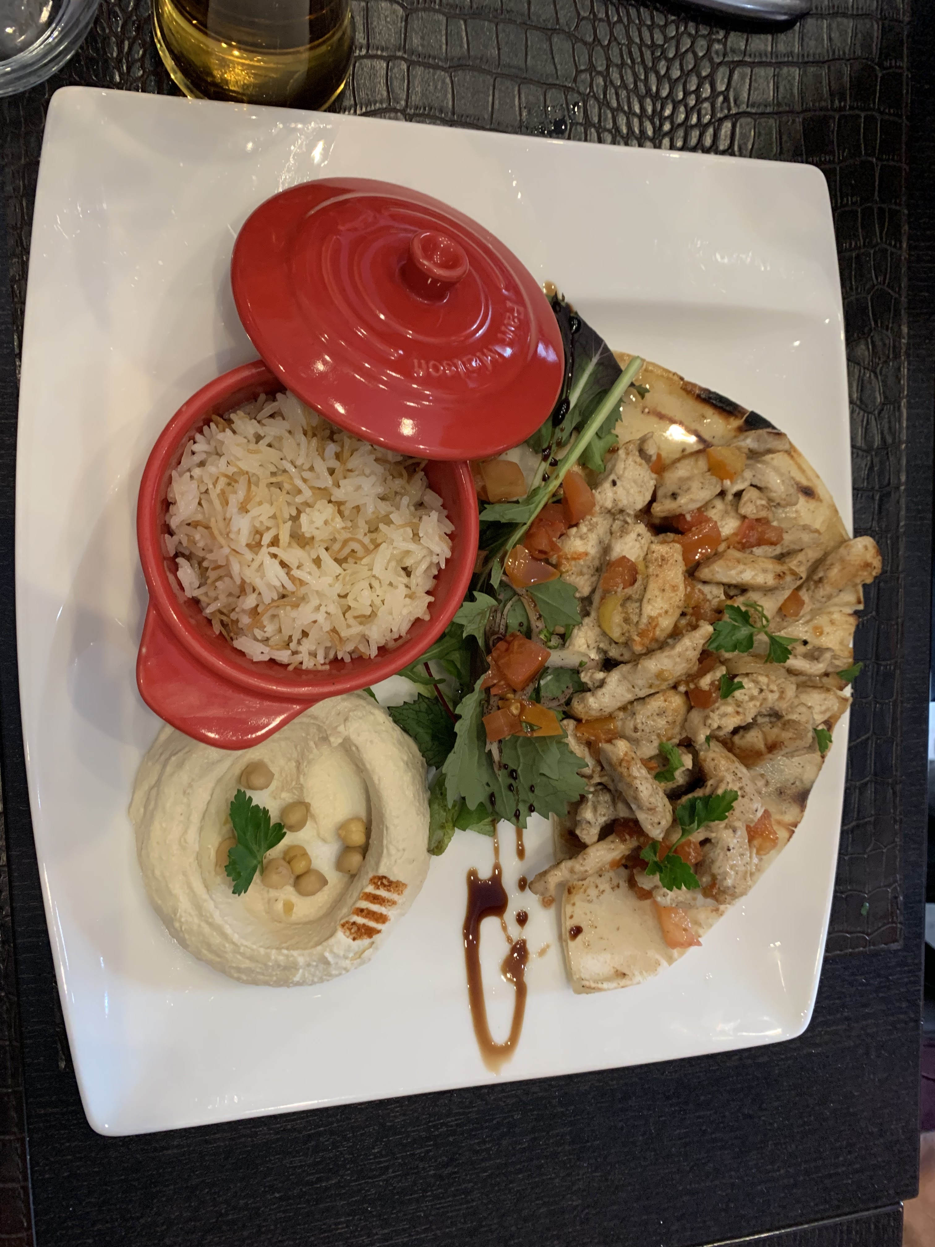 Nous apprécions beaucoup votre restaurant mais cette fois mon plat à base de poulet (à la carte ) était fade, pas vraiment goûteux comme d’habitude. J’espère que votre cuisinier n’était pas y? C’est ce qu’on dit. Nous reviendrons car nous aimons trop votre restaurant et ses spécialités libanaises (27 octobre 2023)