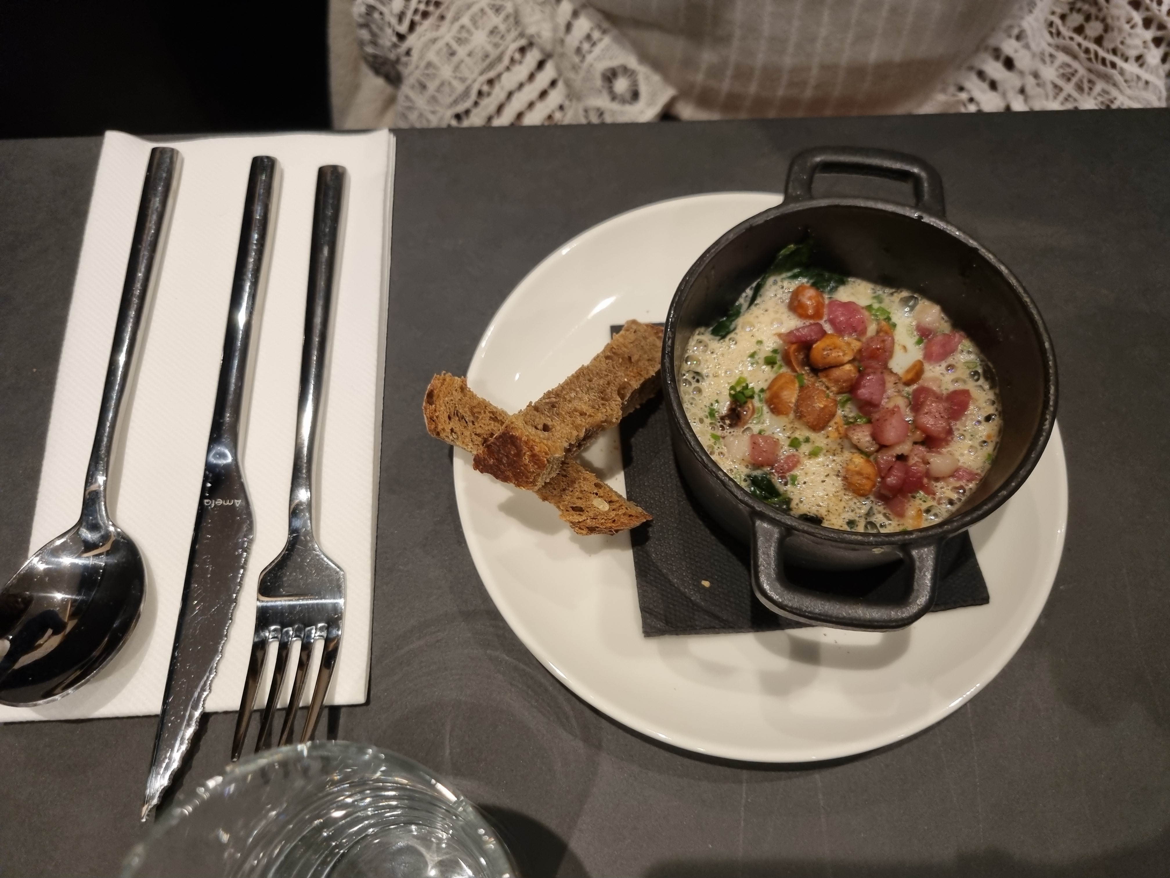 Restaurant français super classique mais beaucoup de recettes originales. Le goût est incroyable, la sélection de vins était de haute qualité. Le service était top. C'était tellement délicieux que j'ai oublié de prendre des photos jusqu'au dessert.