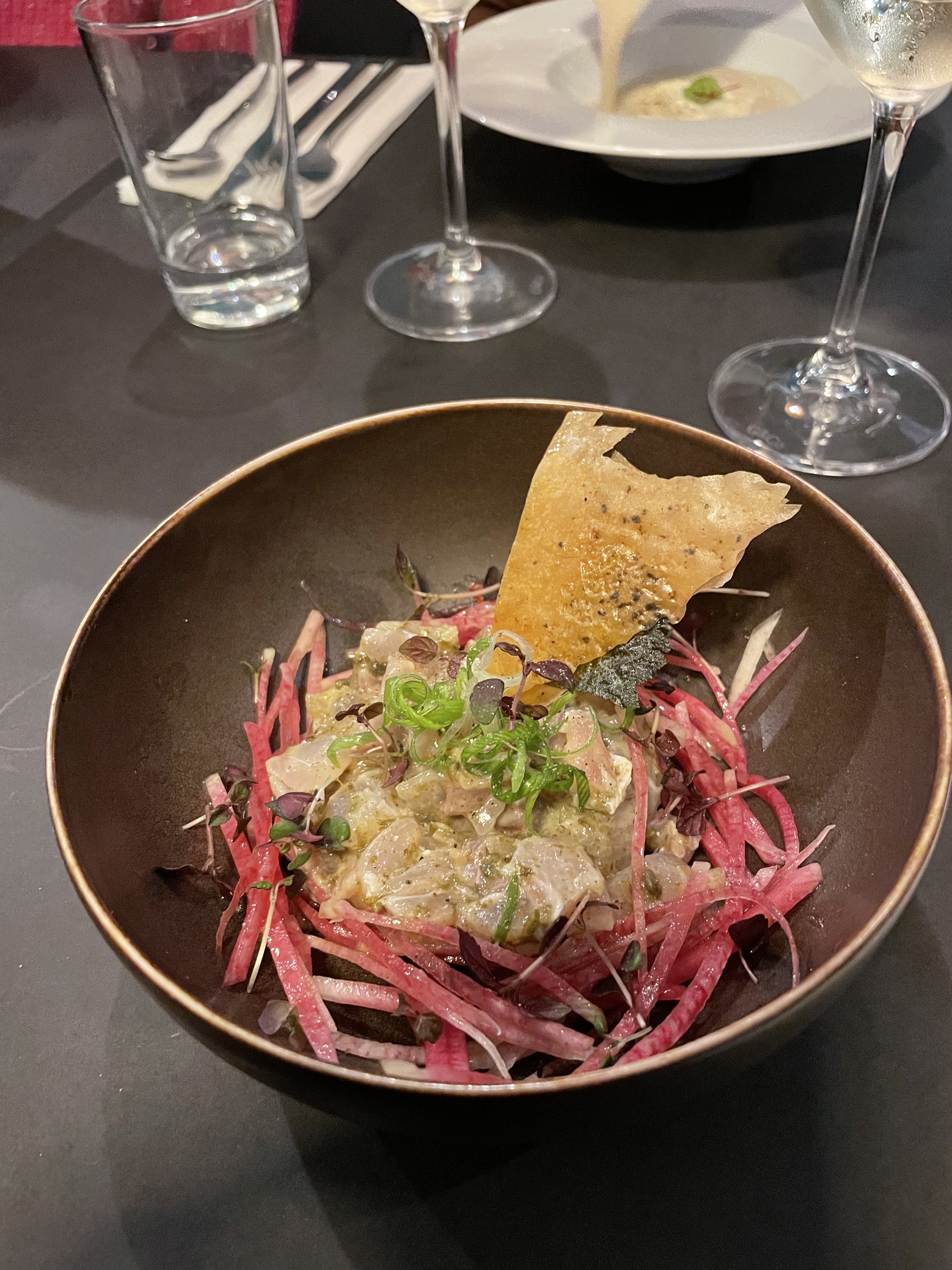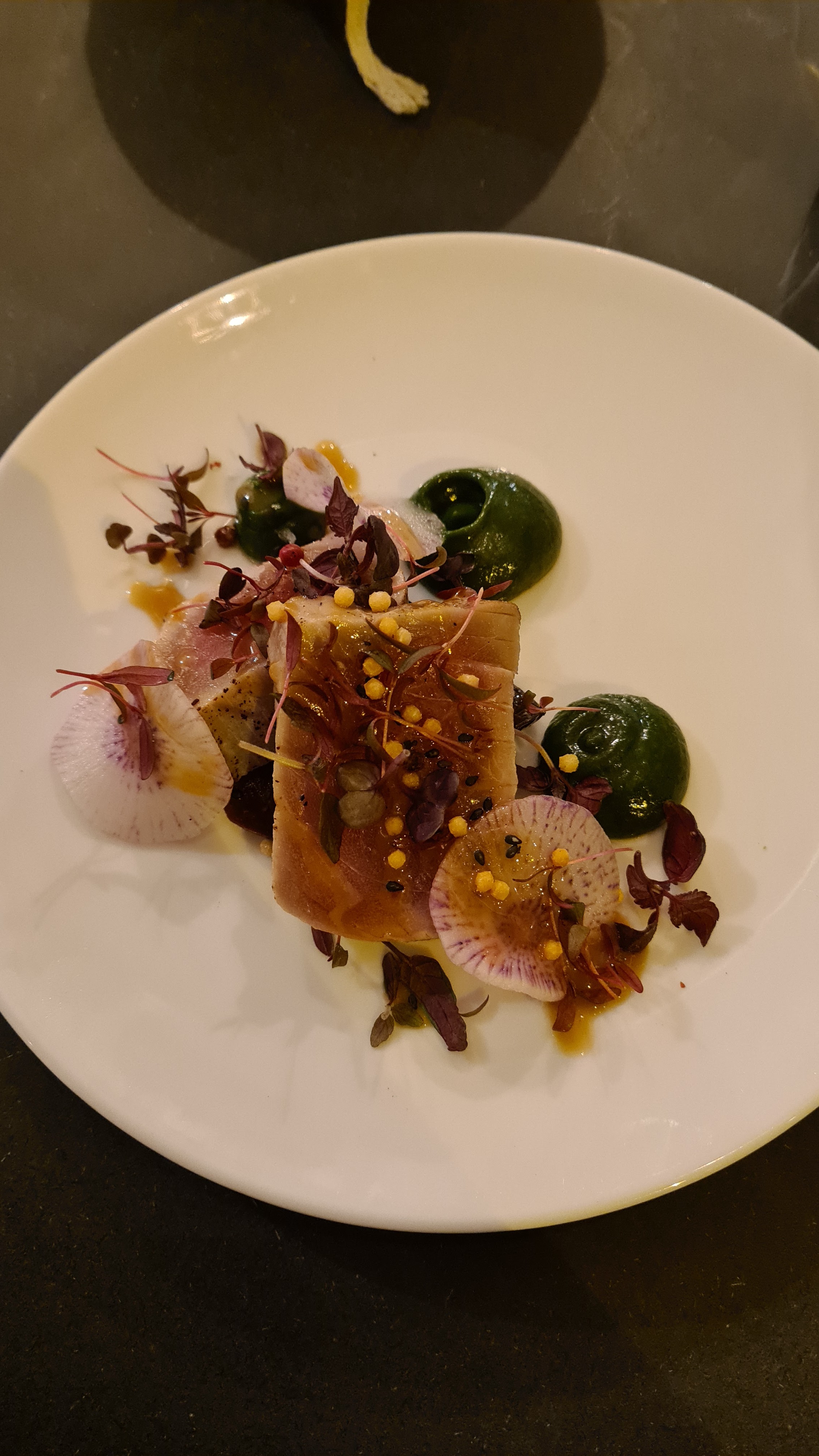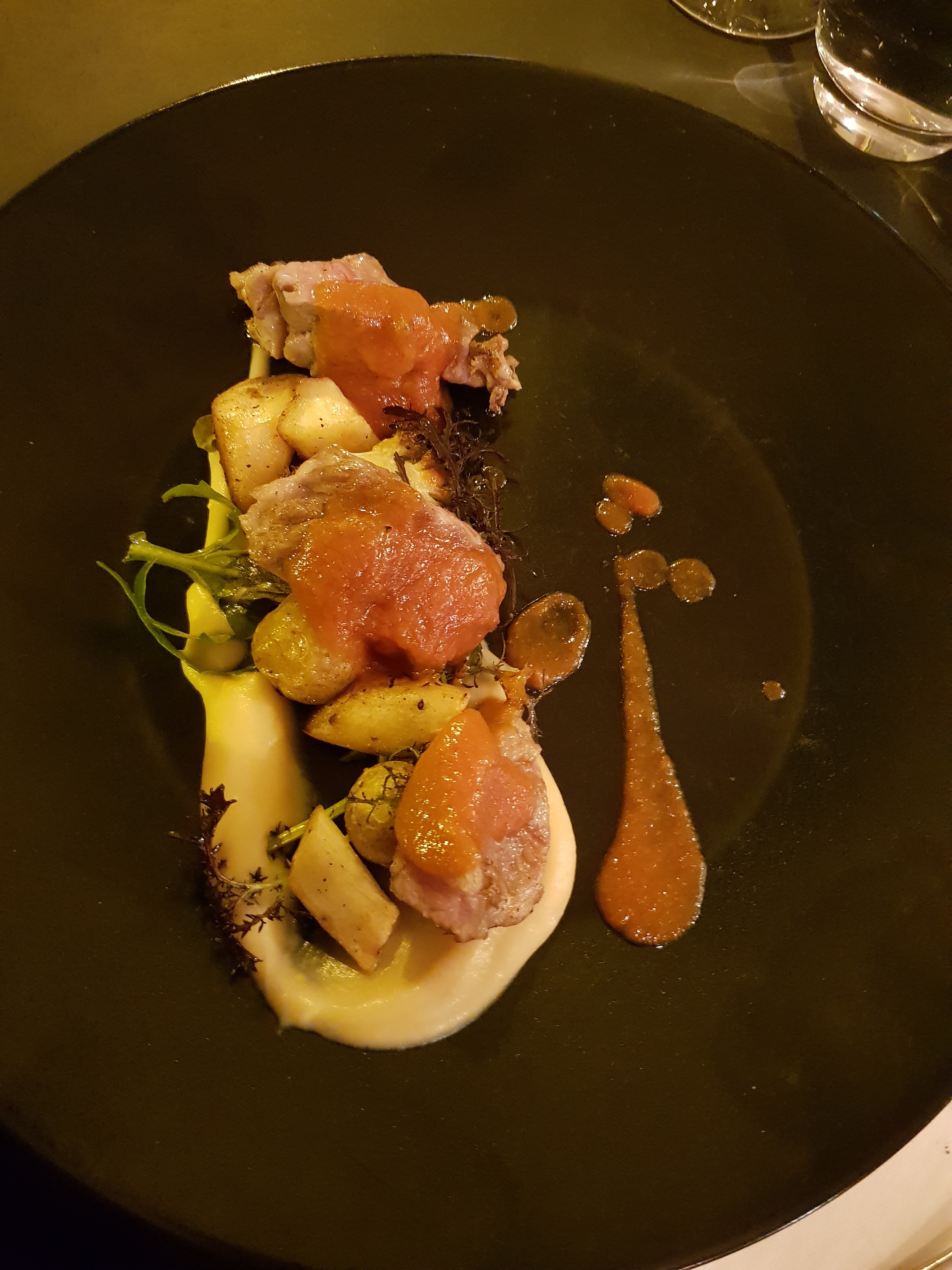 Excellente expérience culinaire. une cuisine délicieuse combinée à une belle sélection de vins. fortement recommandé.