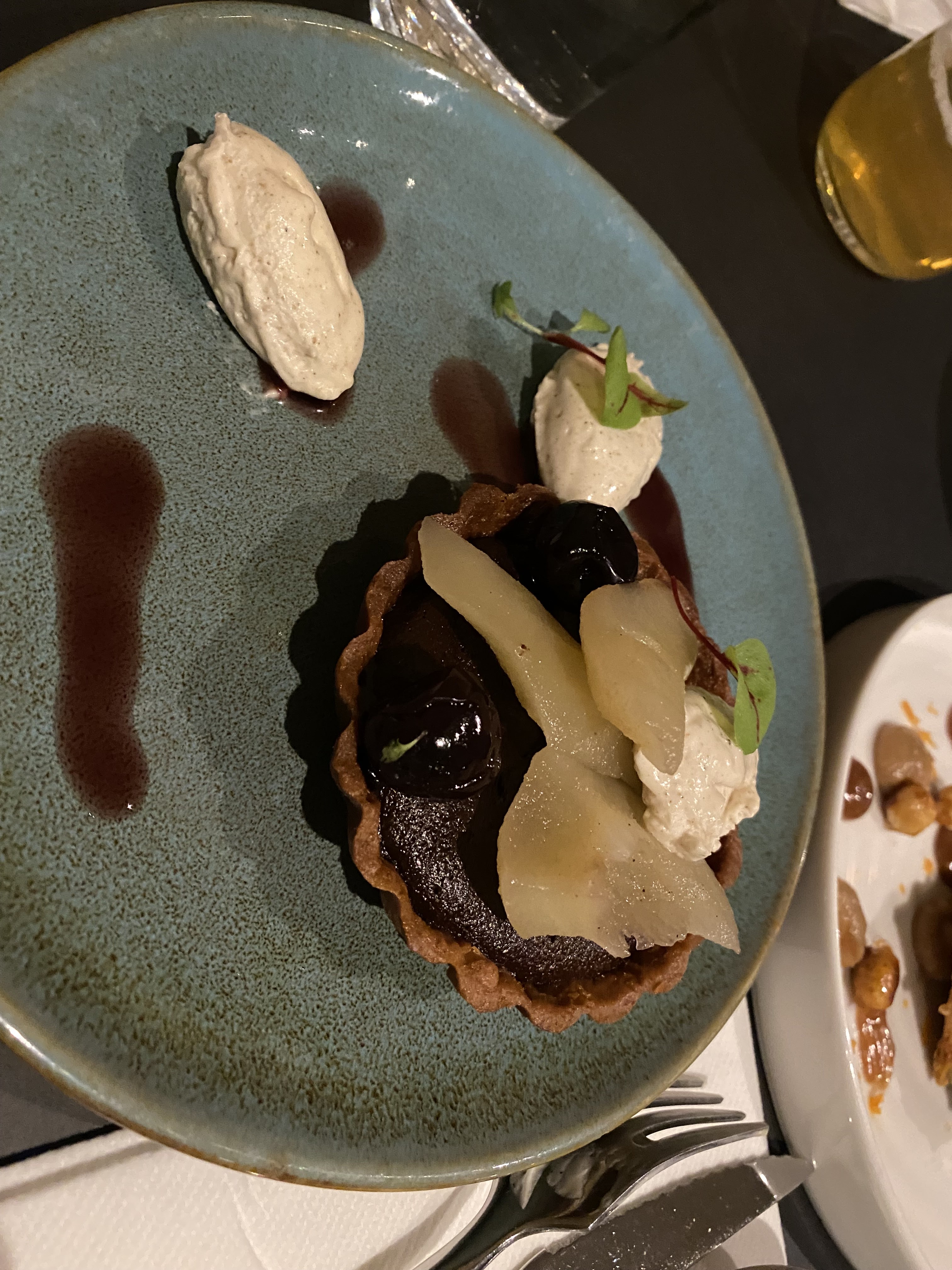 Nous y sommes allés le 31 décembre ,au dîner colvert biche et dessert au top bravo au chef et à son équipe en cuisine et bien sûr grâce à Mathieu spécialiste du vin champagne 🍾 grumier blancs de noirs et sur son conseil hautes cotes de Beaune jobart-morey 2019 délicieux. RV pour la saint Valentin