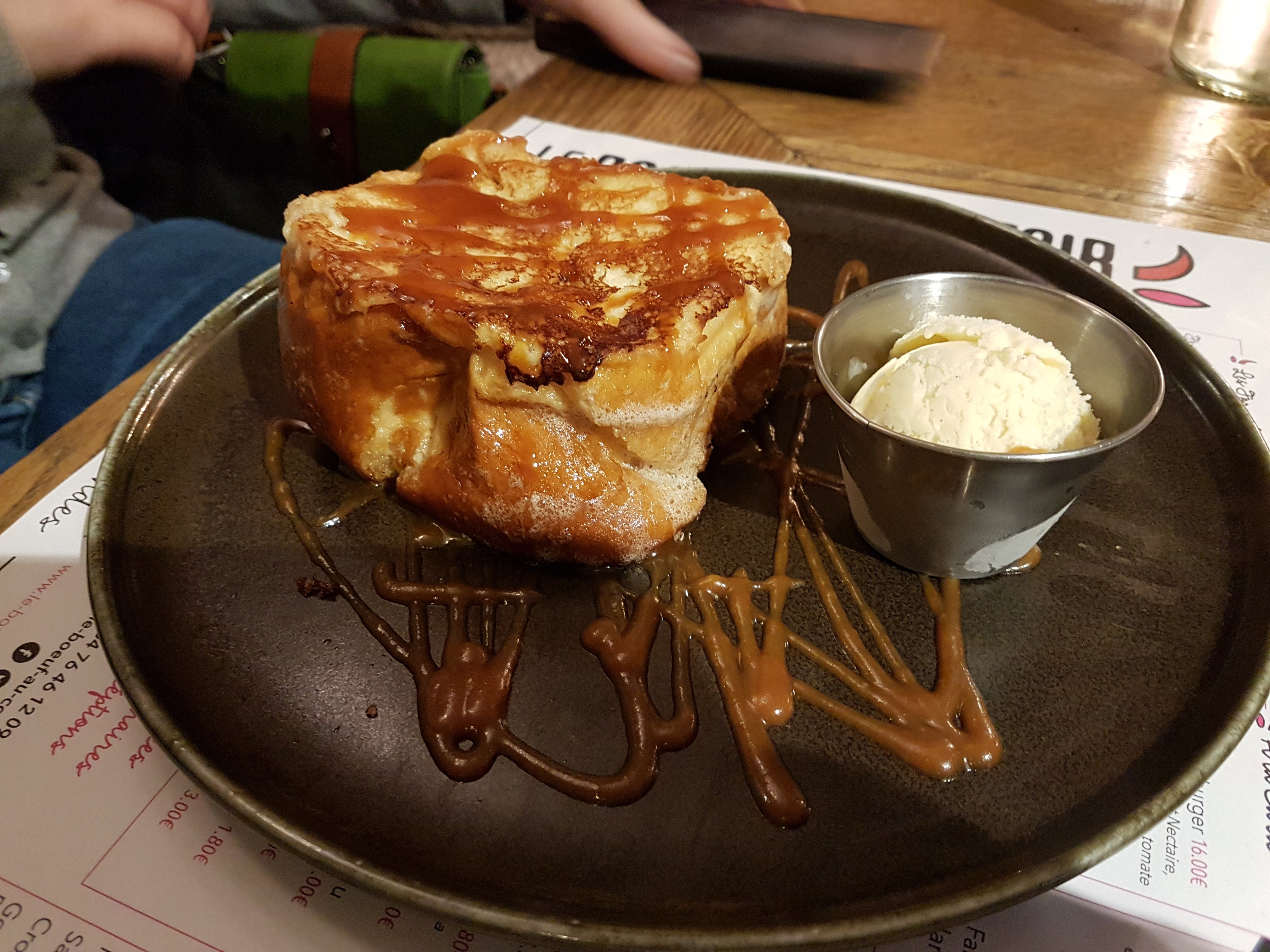 Les cuisses de grenouilles sont excellentes, à volonté perso la 1ère cassolette m'a suffit. Pour terminer leur brioche façon pain perdu au caramel beurre salé est une tuerie et la portion est énorme surtout en fin de repas. Je recommande cet établissement