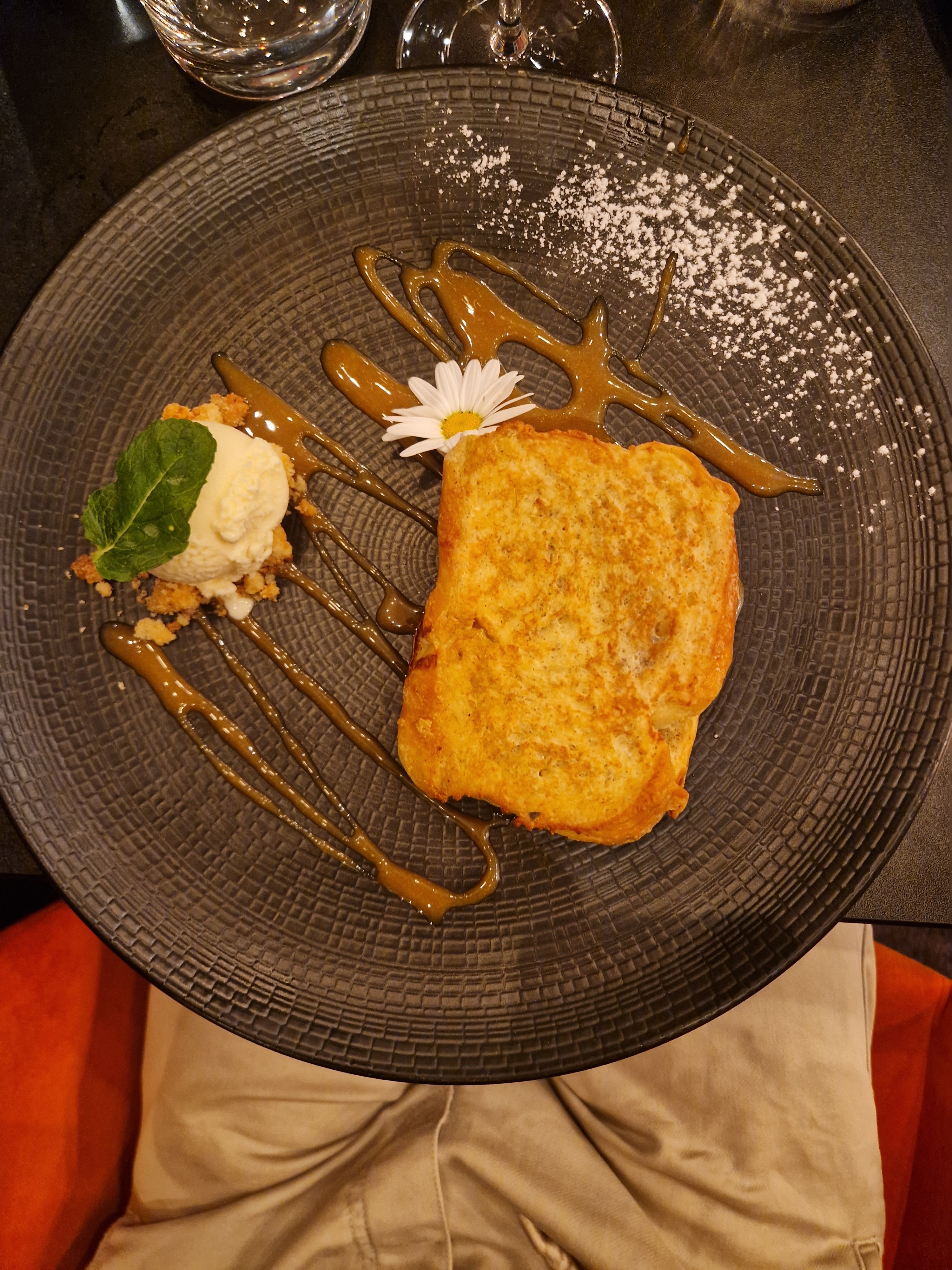 Menu Découverte extra. Cuisine très raffinée, revisitée avec des fleurs, boules de glace et assiettes très bien présentées. Bon accueil et cadre sympa près de l'eau. On le recommande.