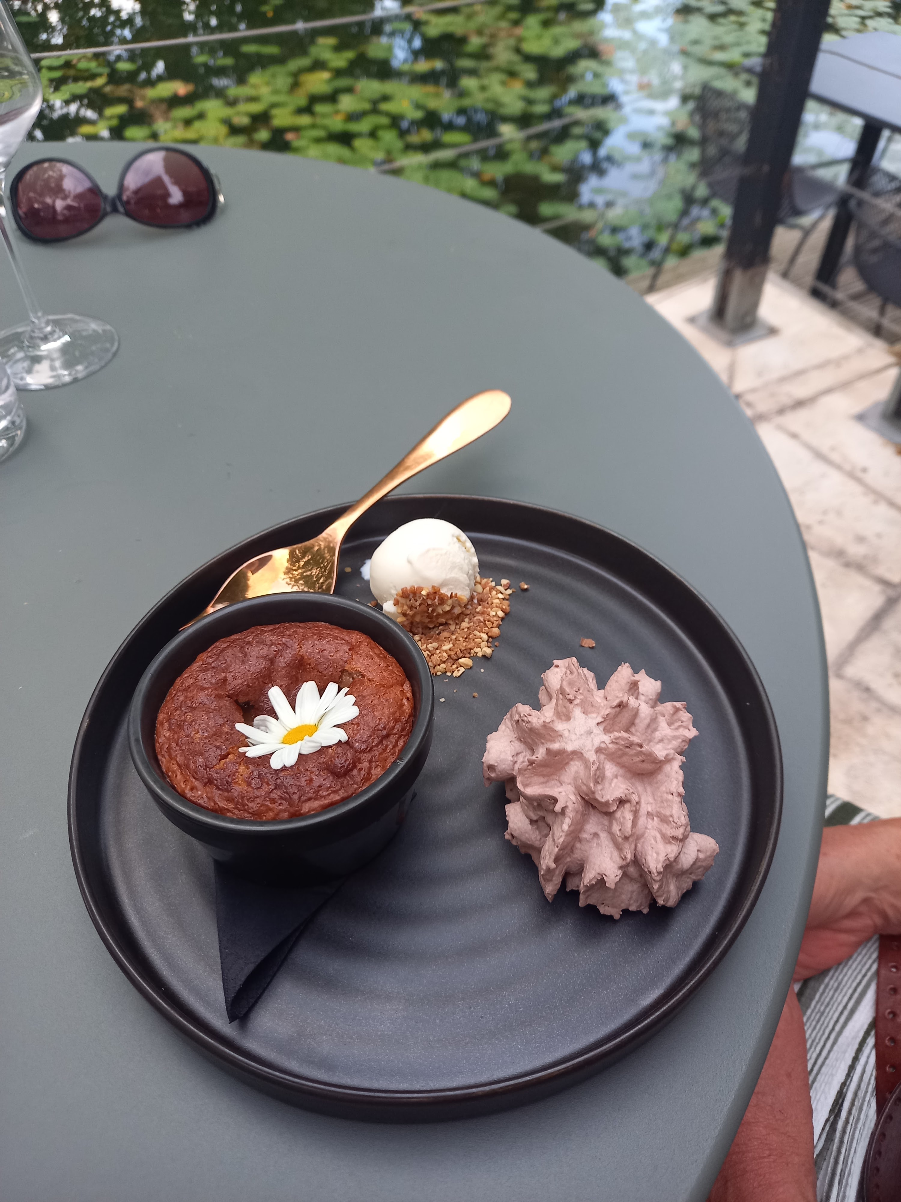Très bel endroit pour manger en terrasse au bord de l'eau. Calme et apaisant. Nous avons pris le menu du jour car nous avons trouvé le menu à la carte un peu cher... Cuisine raffinée, je recommande !