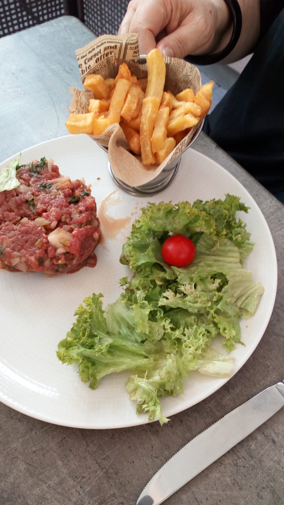 Un peu déçue ! Pour ma part : frites cuites et récuites cent fois, salade sans vinaigrette, et tartare sans assaisonnement ! Et la serveuse qui me dit qui aurait fallut que je demande de la vinaigrette 🙄 Dans ce restaurant on vous sert de la salade sans vinaigrette ! 😳 Il faut la demander..... Aberrant !!!!.... Fin de l'histoire : La patronne est venue voir à table quel était le problème, et après lui avoir exposé mes doléances, a effectué, au moment du règlement, un geste commercial ! Voilà des personnes qui ont vraiment un bon sens du commerce, ce qui est rare de nos jours. Je remercie ces restaurateurs !