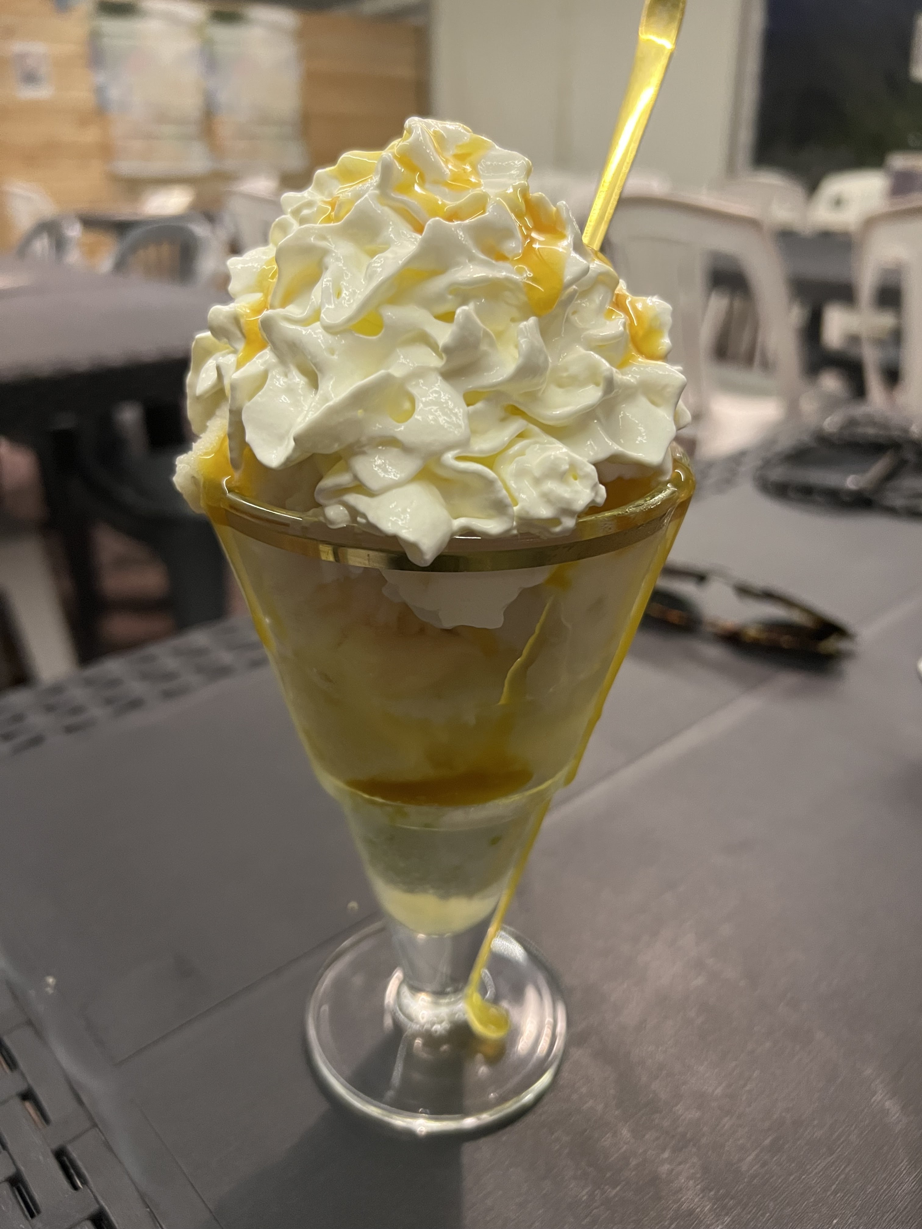 Un restaurant dans un très beau camping avec un personnel aimable et souriant. Pizza? Bref, la pâte et la cuisson n'étaient pas au top. Cependant, nous avons apprécié les glaces, le large choix et les coupes généreuses !