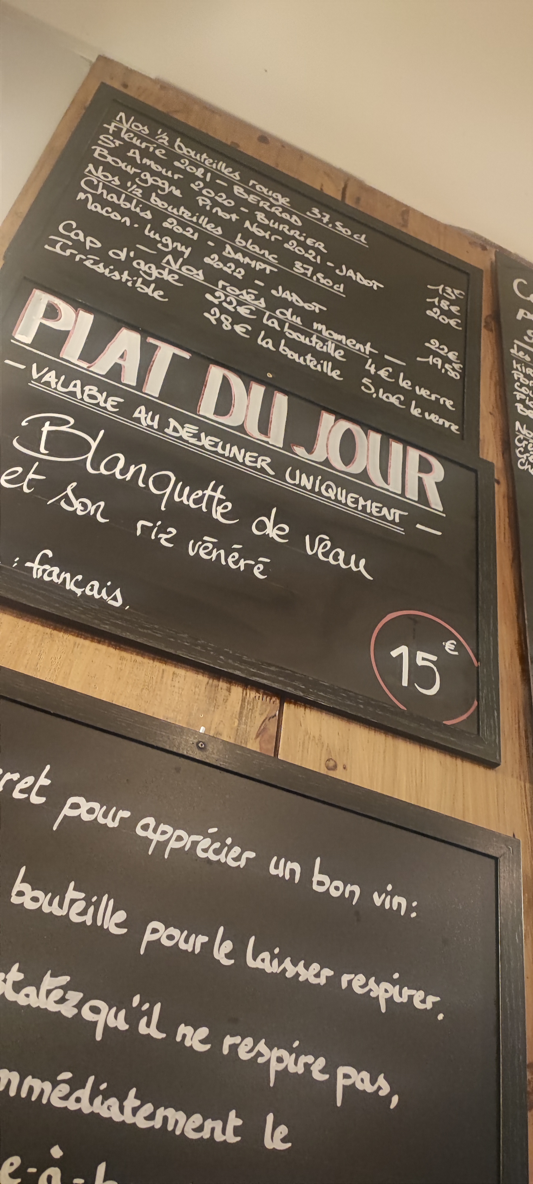 Accueil fort sympathique. Repas goûteux notamment les délicieux oeufs meurette. Vins bien choisis. Je vous conseille ce lieu.