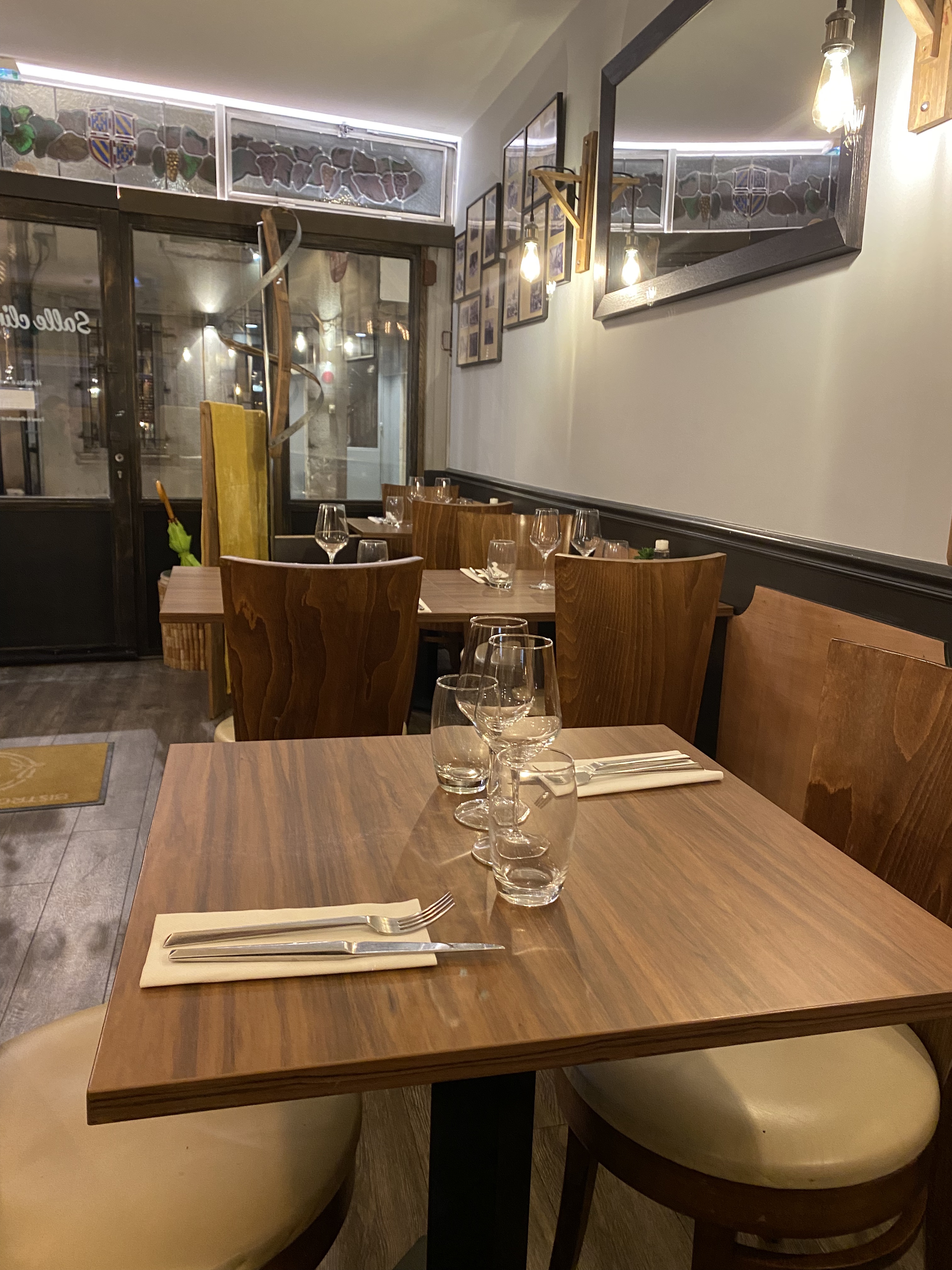 Accueil agréable, déco sommaire. Très bonne carte des vins et de bon conseil. Mais un peu cher pour ce que c'est . plat de résistance mal exécuté (simple) on a pris rognon et paleron . Entrée agréable. Ne prenez pas le tiramisu il ne vaut pas le coup ( trop sec). En somme : SURFAIT