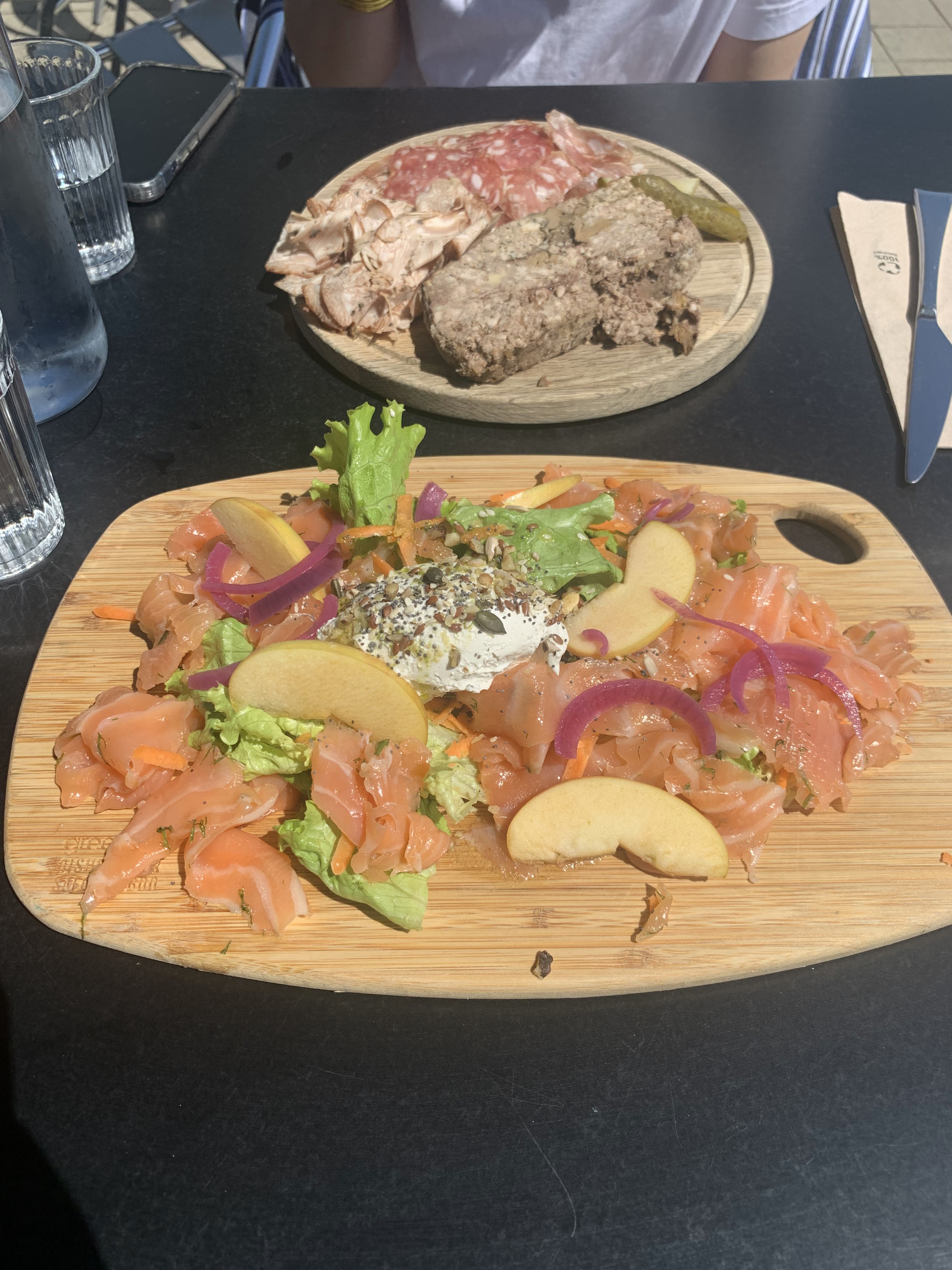Rien à redire, lieu calme, agréable et relaxant. Les serveurs / serveuses ainsi que l’équipe de cuisine est très agréable. Les planches à partager sont incroyables, la meilleure terrine que j’ai jamais mangé de ma vie. Le saumon était lui aussi incroyable ainsi que les fines tranches de pommes 🍏 ! Les frites sont vraiment très très bonnes aussi ! Les desserts sont très délicieux, nous avions pris une crème brûlée ainsi que le fromage blanc ! L’établissement est propre, c’est un lieu où nous reviendrons avec plaisir de temps en temps ! A bientôt.