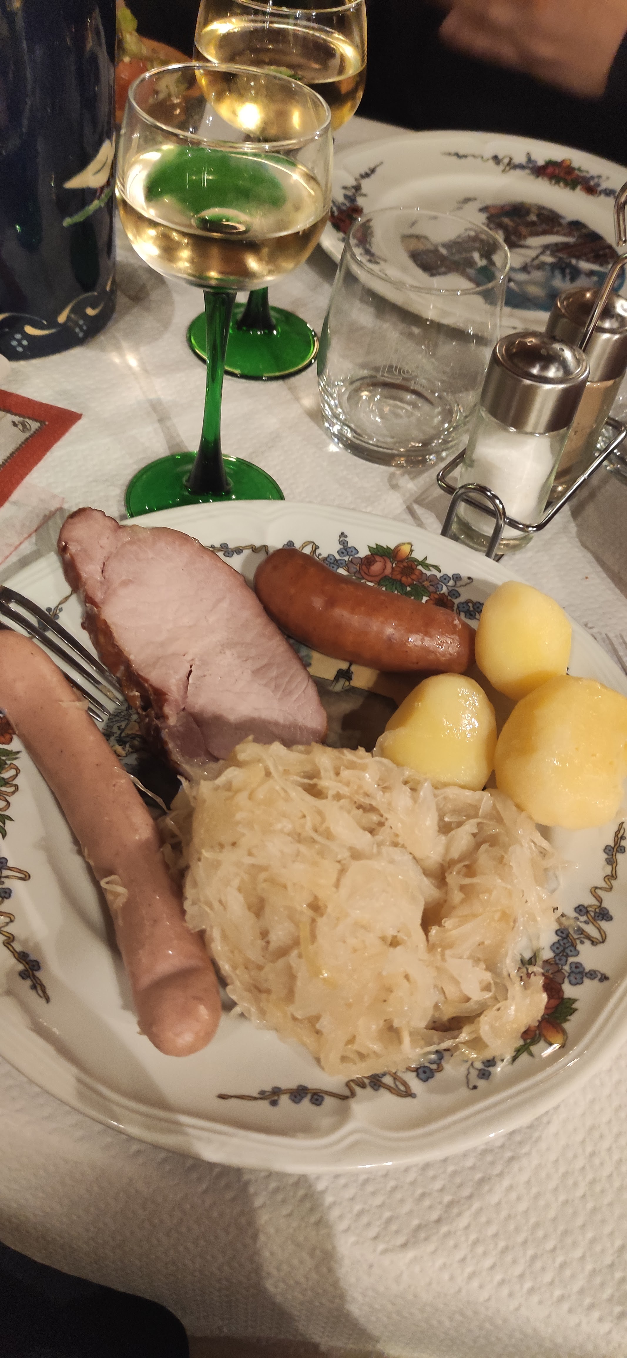 Nous sommes venus à quatres amis pendant le marché de Noël. La choucroute est de qualité, la munster frit était ni trop fait ni pas assez. Le service efficace et chaleureux. Je recommande.