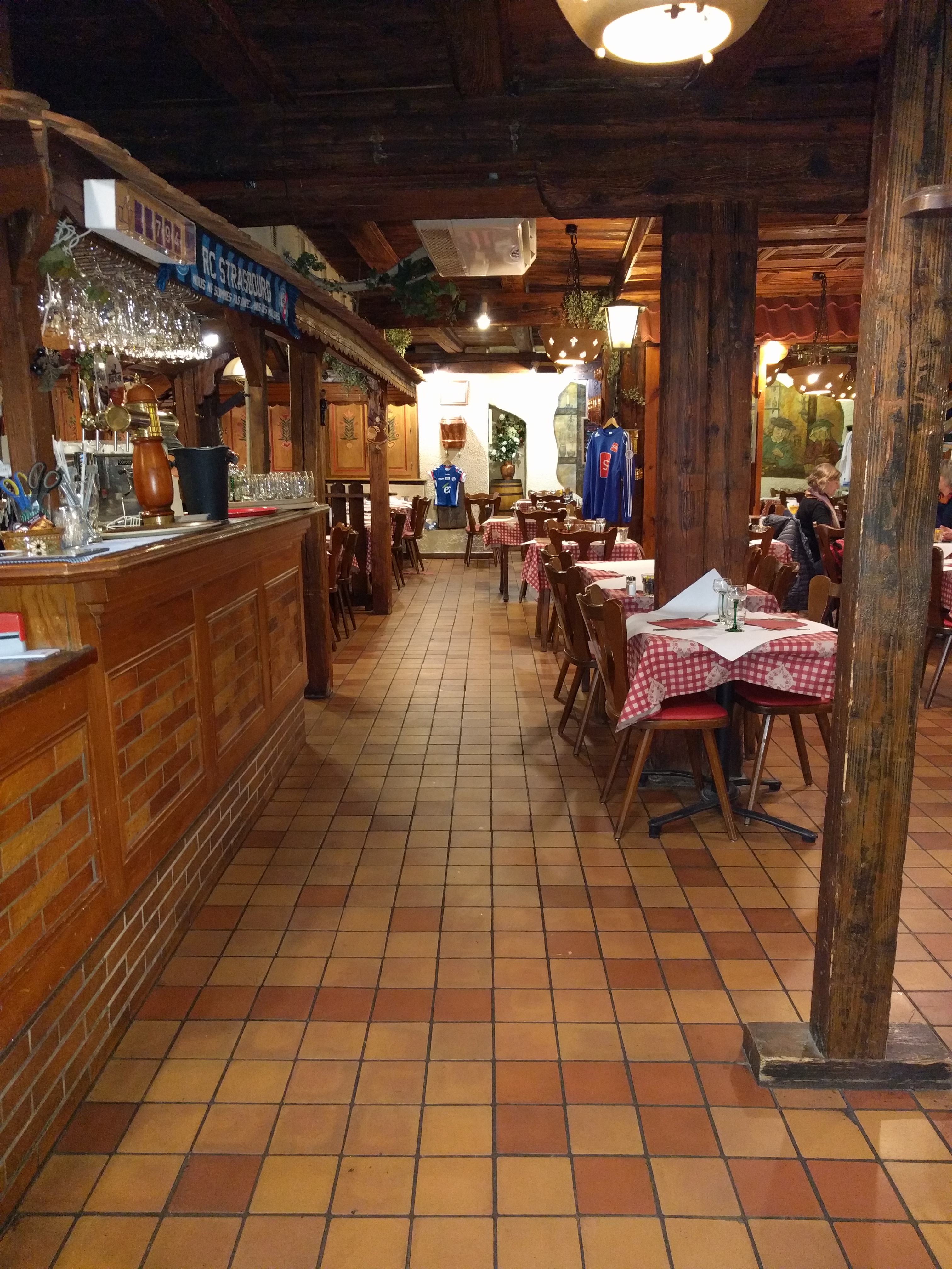 Un bon petit restau traditionnel, avec un très bon rapport qualité prix. Des menus et des promos 'deux pour le prix d'un' font vraiment baisser l'addition, et ce, même le weekend. La cuisine est un peu en dessous d'autres établissements du quartier, mais reste très correcte et est très généreusement servie. Bonne soirée en perspective, même pour des gros groupes affamés. Un petit bémol sur la ventilation insuffisante : vêtements parfumés au Münster à la sortie!