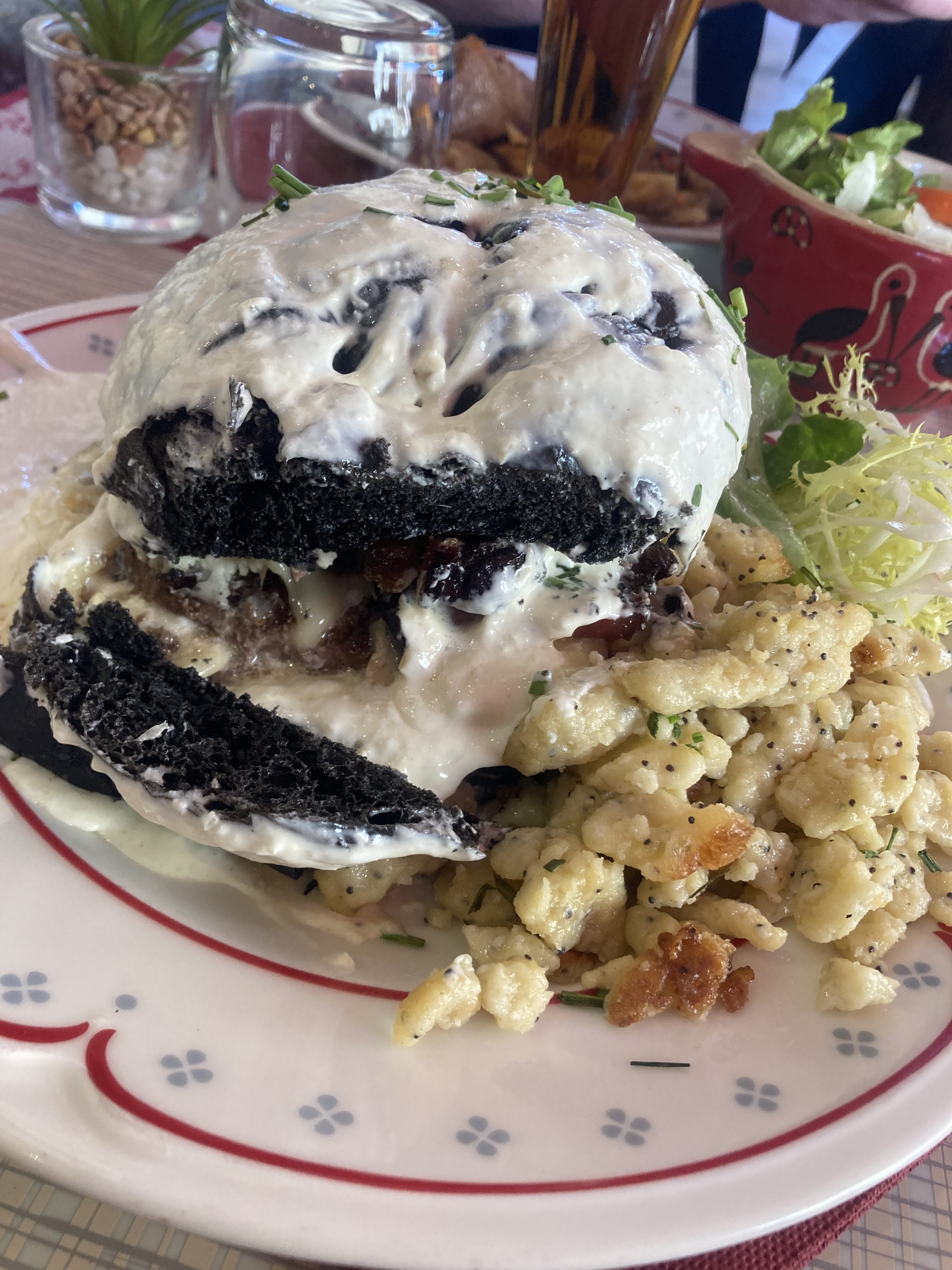 Nous avons pris un Baeckaoffa au munster et lardons ! C’était délicieux rien à dire, les assiettes sont conséquentes. La décoration Alsacienne est magnifique (et fière de l’être). Je vous le conseille sans problème ! ☺️
