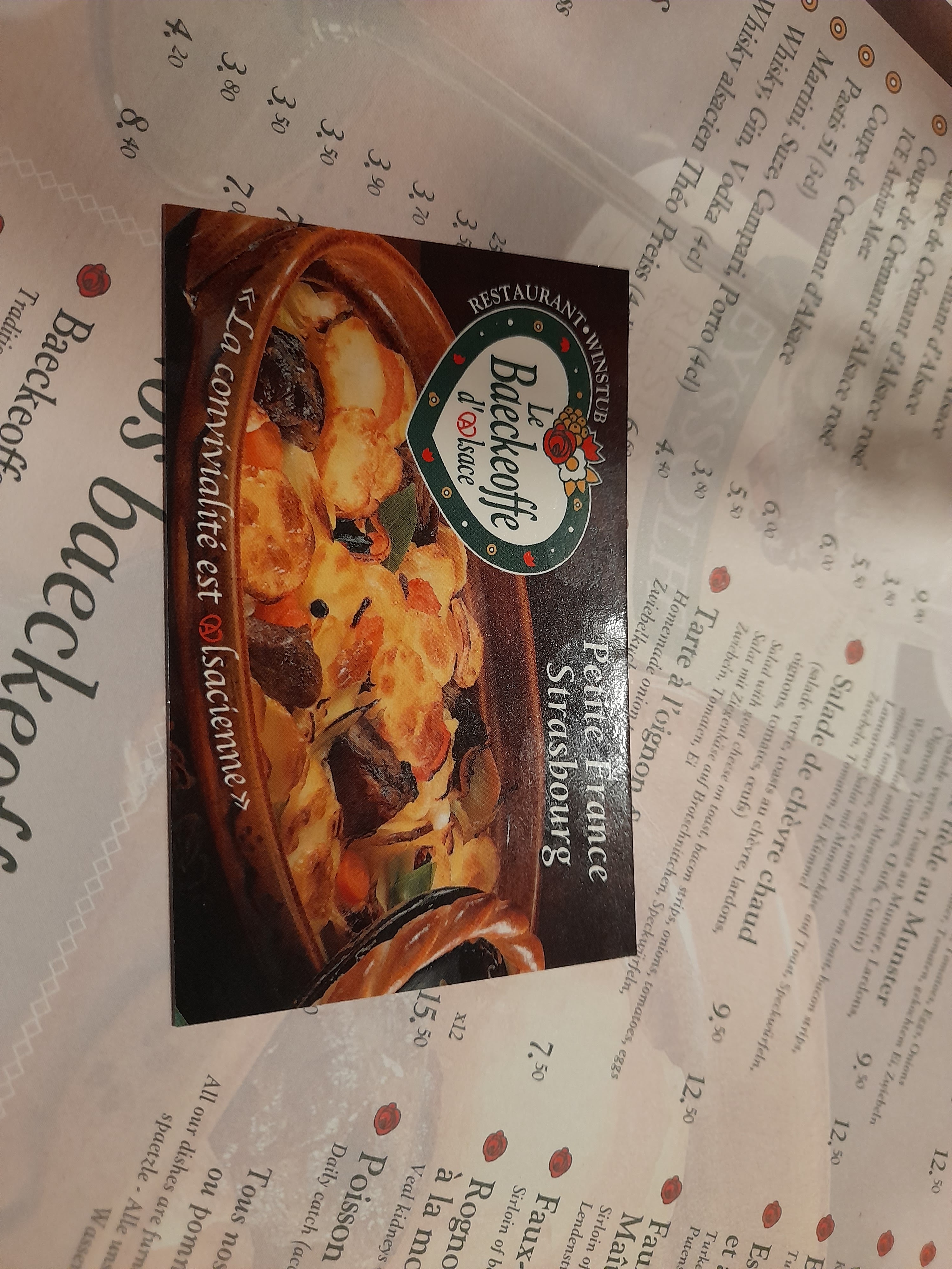 Un restaurant typique, les plats sont copieux. J'ai pris un plat baeckeoffe traditionnel et mon épouse à pris un plat baeckeoffe au saumon. On n'arrive pas terminer. Les baeckeoffes sont très bons.
