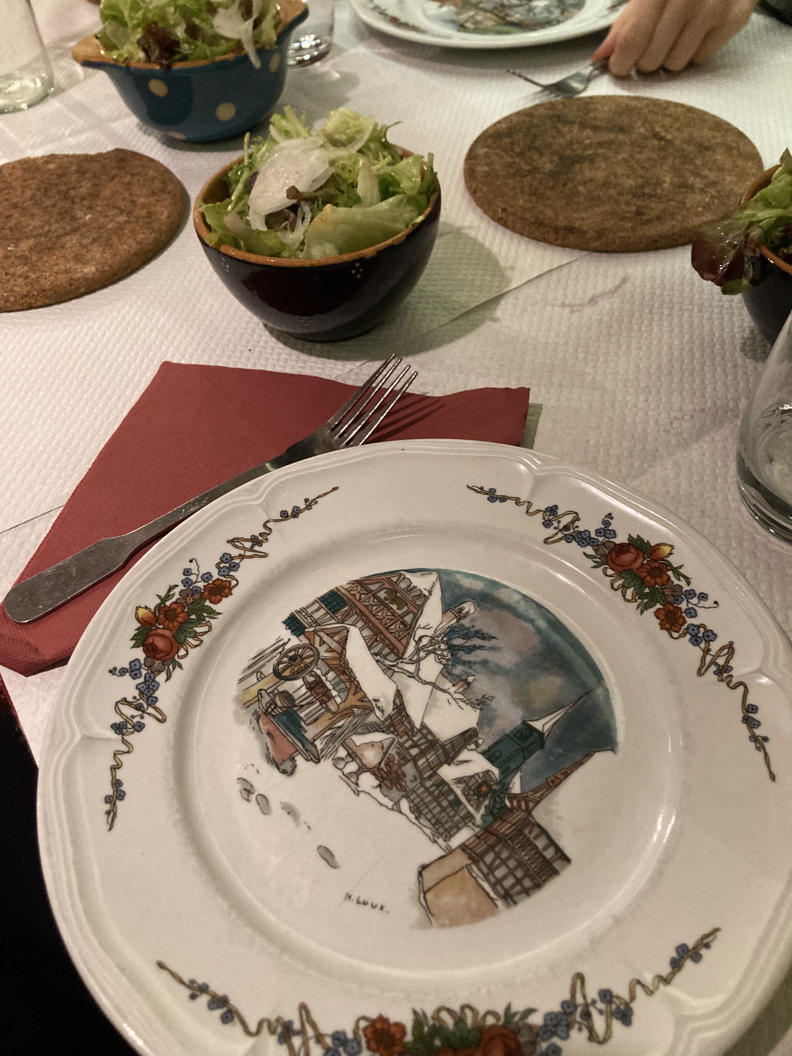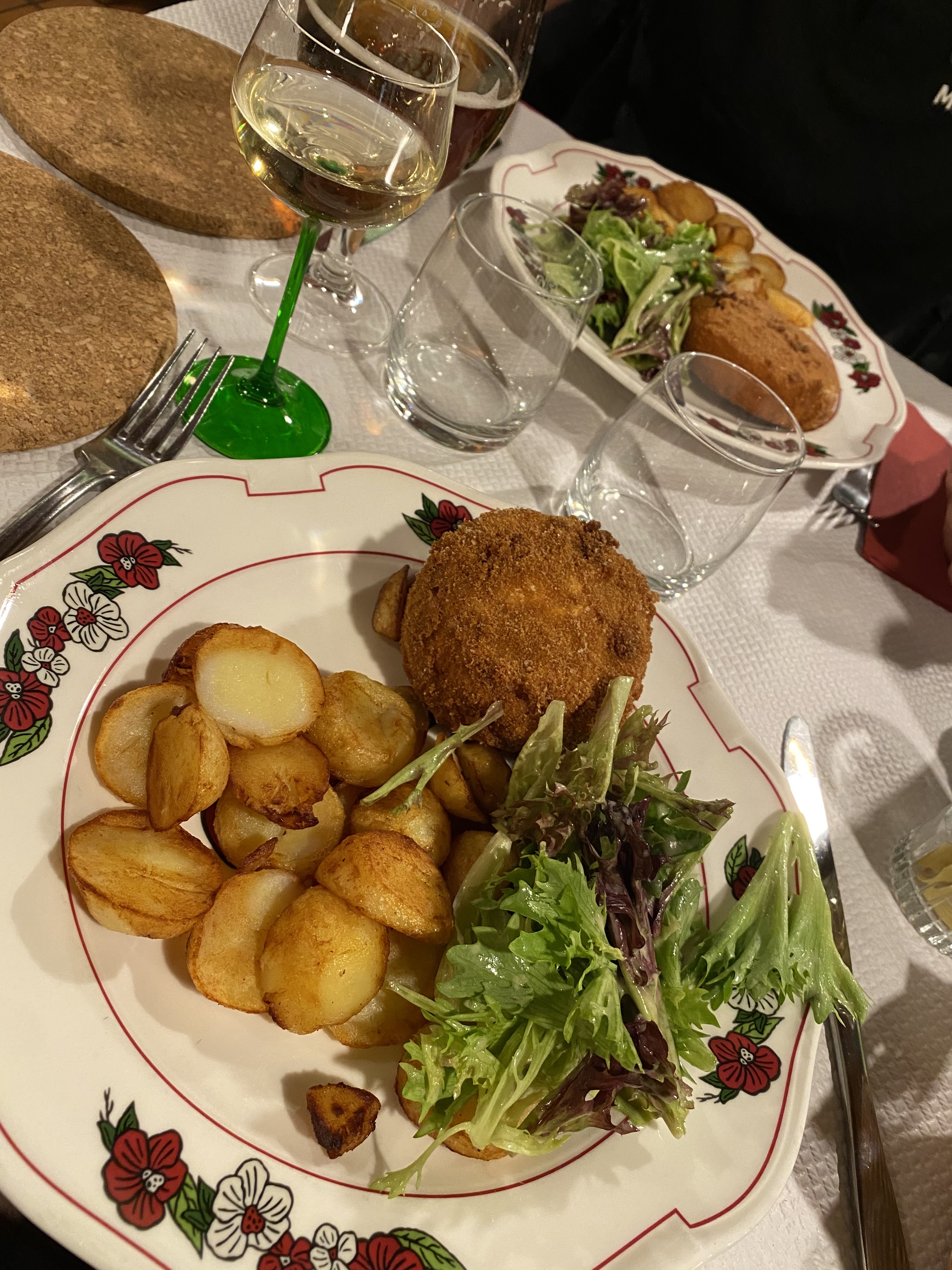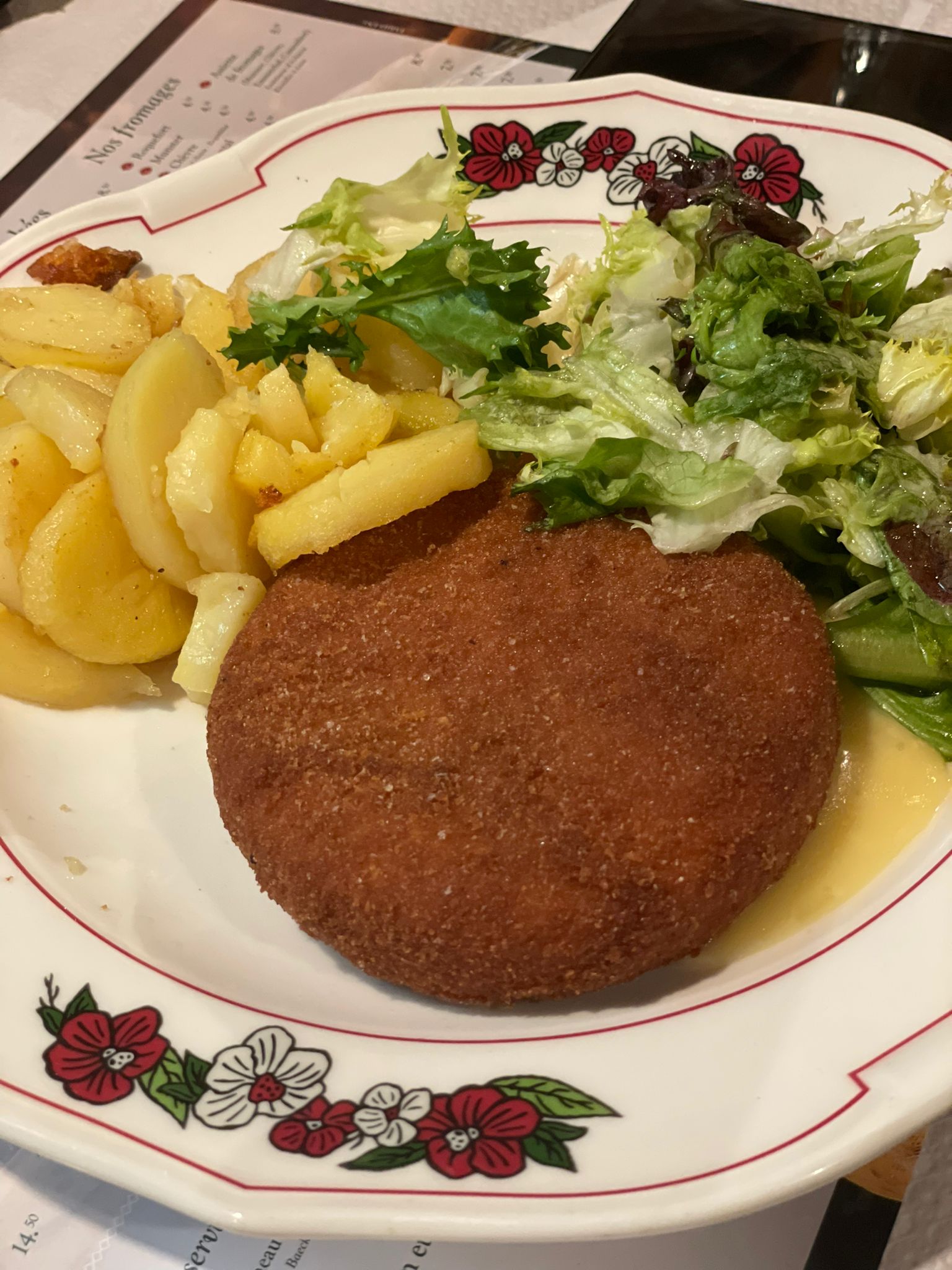Super repas dans un cadre superbe dans le quartier de la petite France : Munster frit accompagné de pommes de terre frites également et sa salade - bouchée à la reine accompagnée de spätzel. Le dessert choisi à l'unanimité : kouglof glace au marc de gewurztraminer. Le tout était une tuerie !