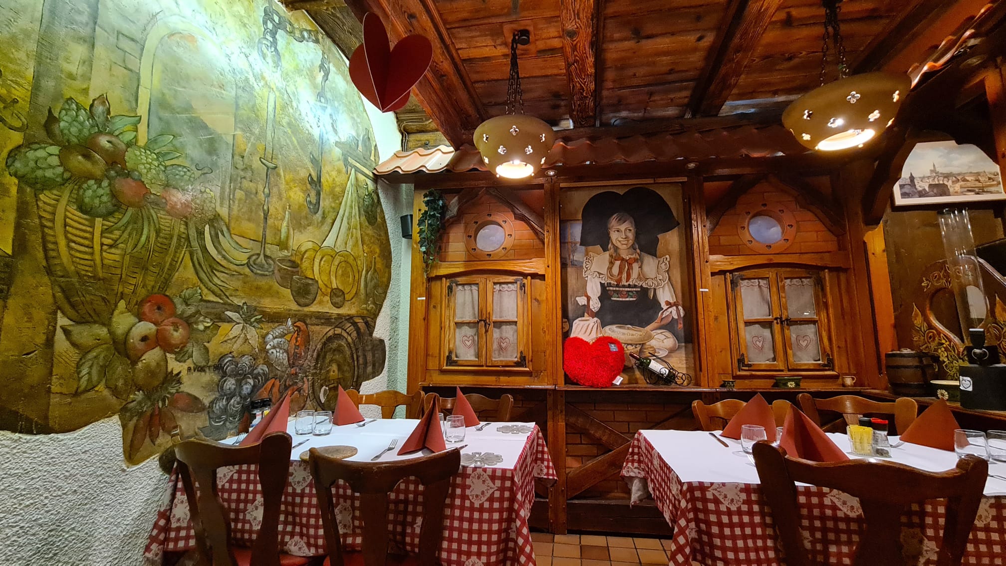 ❝ Plats de viande traditionnels cuits au four et assiettes de fromage dans un cadre rétro à la décoration boisée. ❞