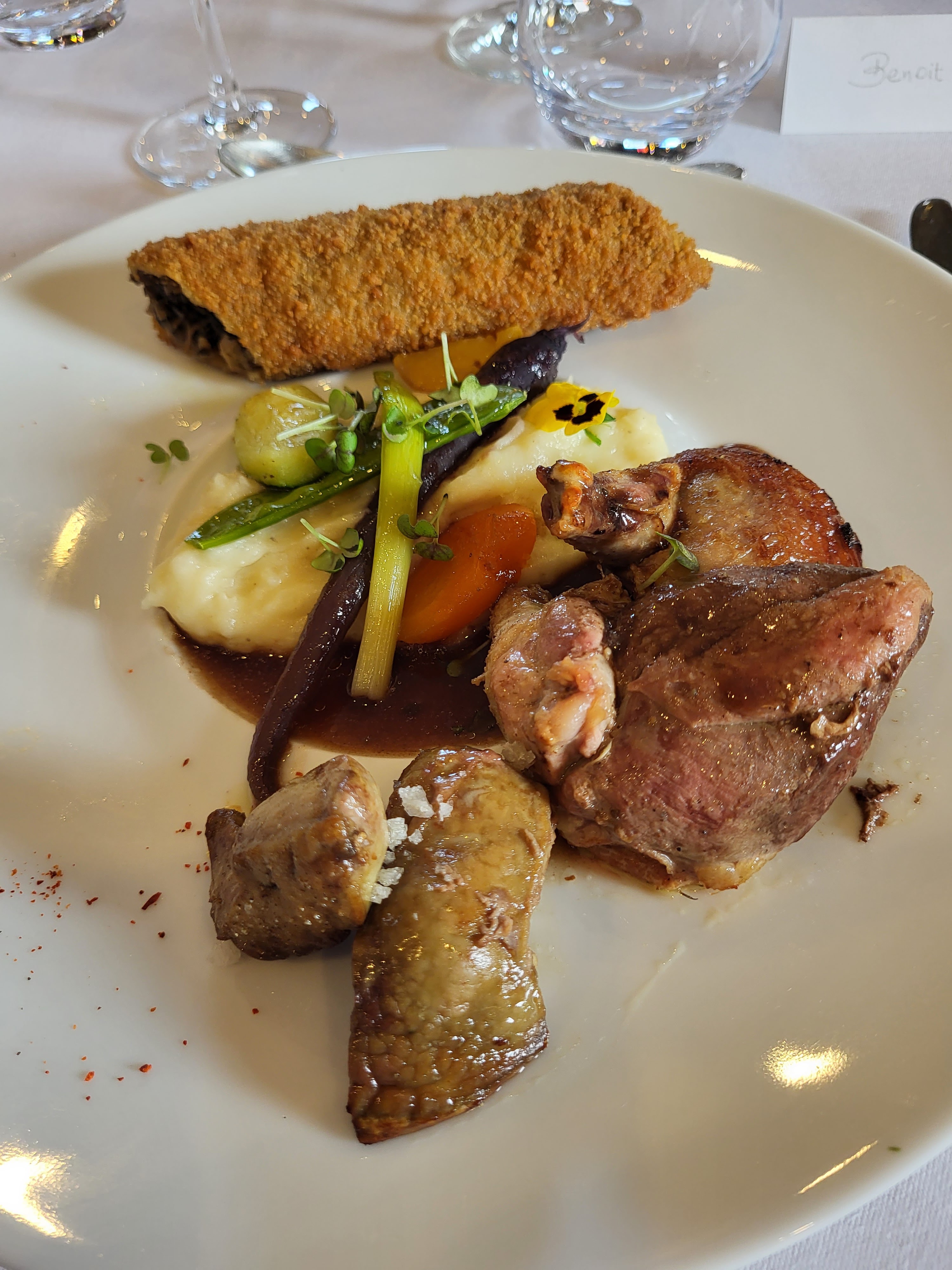 Excellent repas cuisine fine pleine de caractère service efficace et charmant
