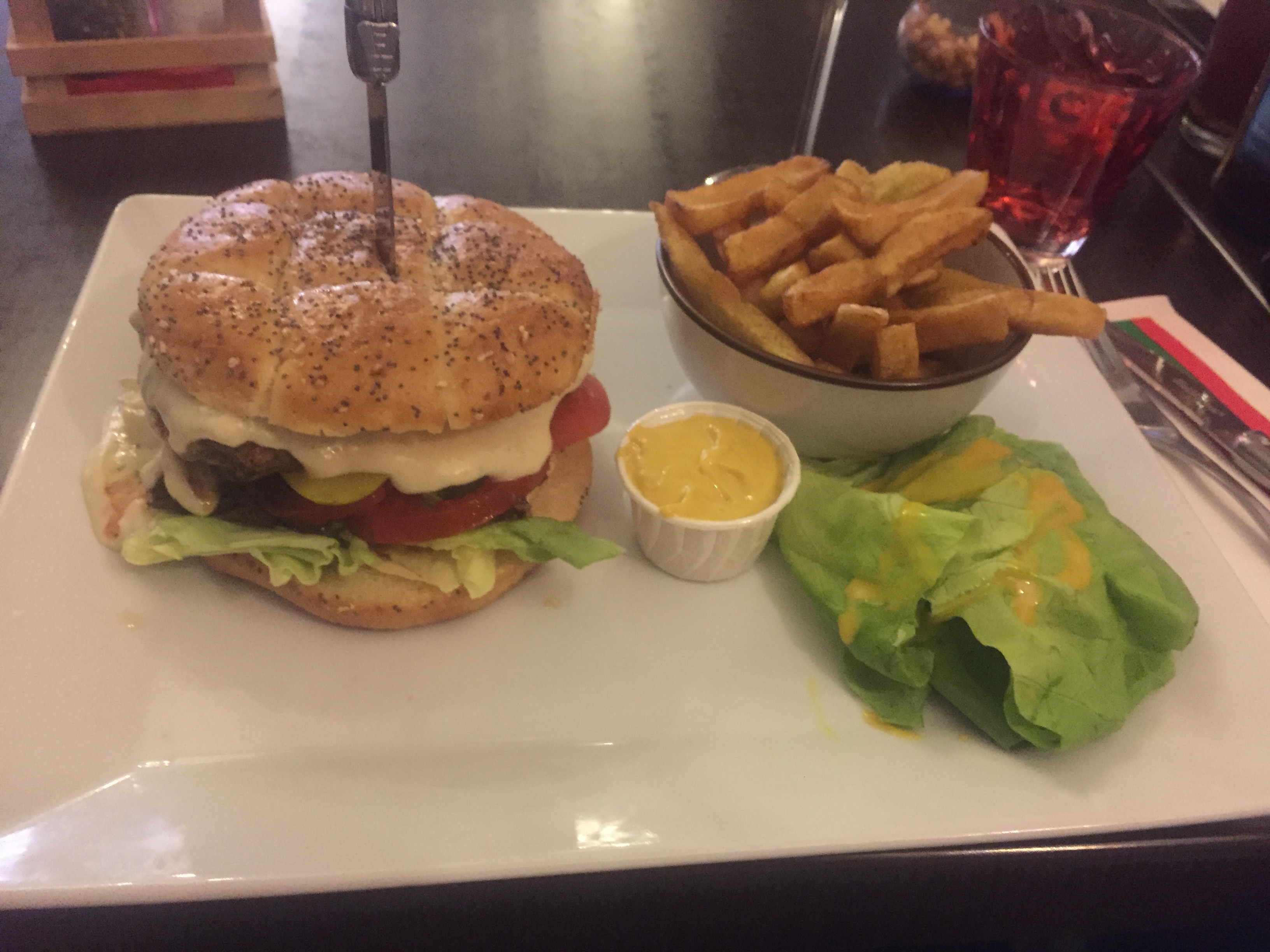 L'ambiance du restaurant est parfaite, la déco mêlée à la sympathie du personnel aux tenues atypiques font de ce restaurant un mieux très convivial. Pour ma part j'ai testé un burger, assez cher mais l'expérience est incomparable!