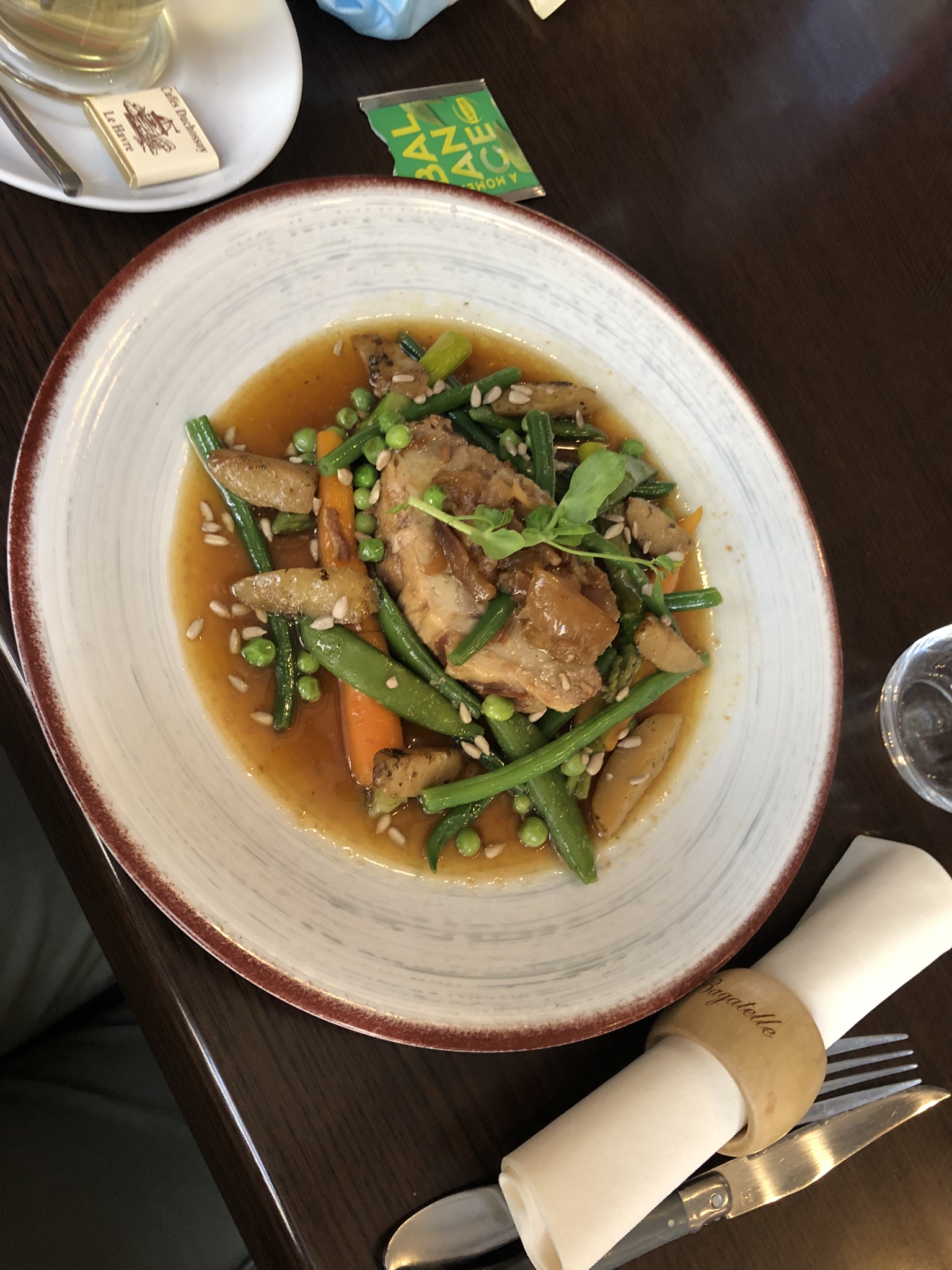 Je suis allée à Bagatelle il y a une ou deux semaines, sans savoir que le propriétaire avait changé. D’abord échaudée par les prix (entrecôte à 29€ 😬), je me suis laissé tenter et bien que cher, je n’ai pas regretté mon choix. J’y suis retournée ce midi avec mon père et mes enfants, en leur vantant l’entrecôte. Erreur, celle de mon père comptait une bonne moitié de gras. Ne voulant pas déranger, il n’a rien dit pendant le repas. Au moment de débarrasser, je l’ai signalé à la serveuse qui a pu constater l’assiette pleine de gras. Pas un mot si ce n’est « ça arrive ». Au moment de l’addition, j’ai demandé un geste commercial. La serveuse a royalement offert deux cafés (4€). J’ai insisté pour qu’elle fasse une réduction sur l’entrecôte pleine de gras. Non. C’est donc la loterie et quand on perd, on perd! Pas sûre de rejouer…