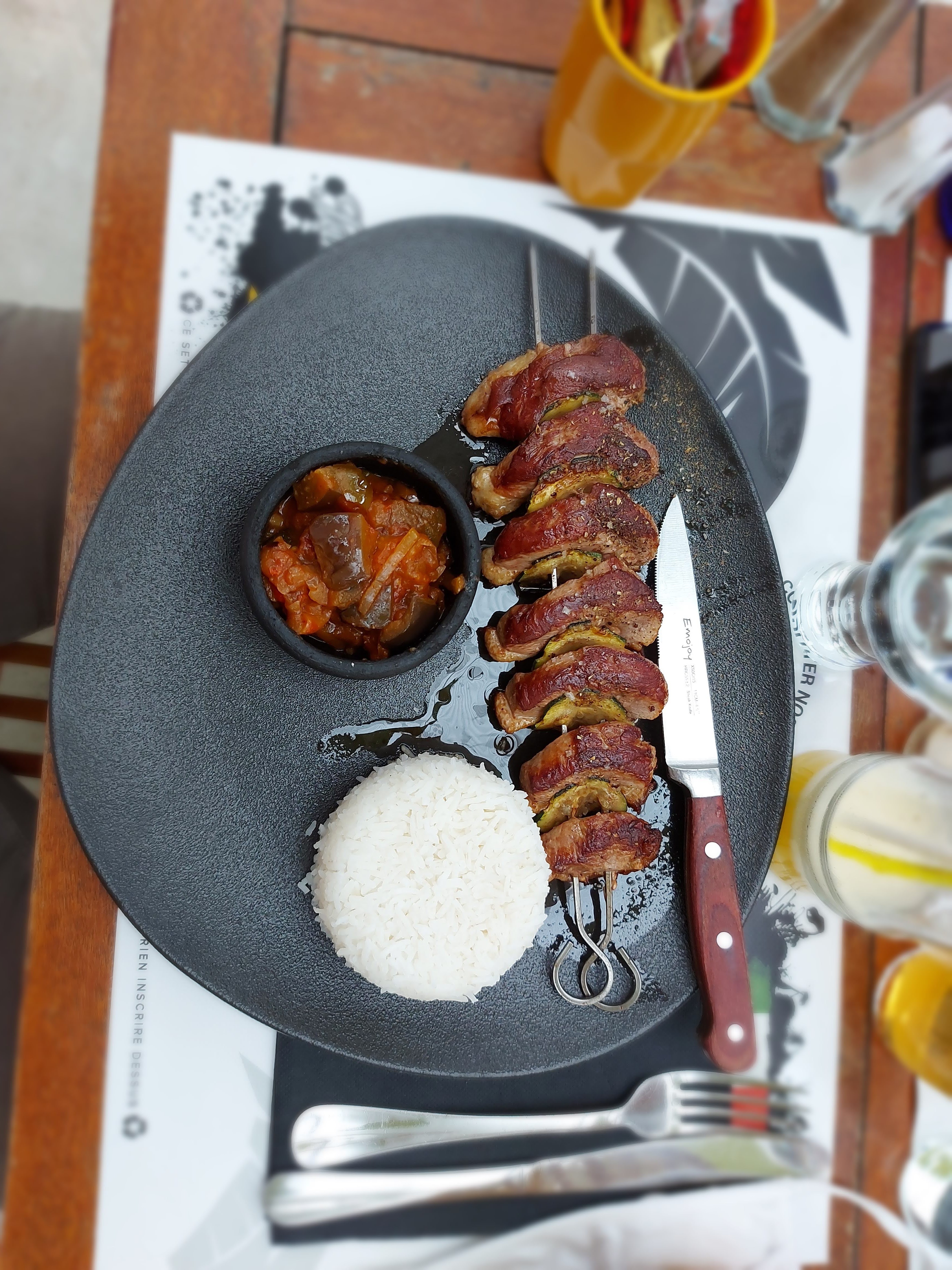 Si vous avez envie de dépaysement, c'est une bonne adresse, un serveur très sympa, des tables disposées deci delà dans un cadre verdoyant et côté cuisine, je recommande particulièrement le feijoada (le cassoulet brésilien) et la brochette de fruits caramélisés avec sa boule de glace vanille ! 😋👍