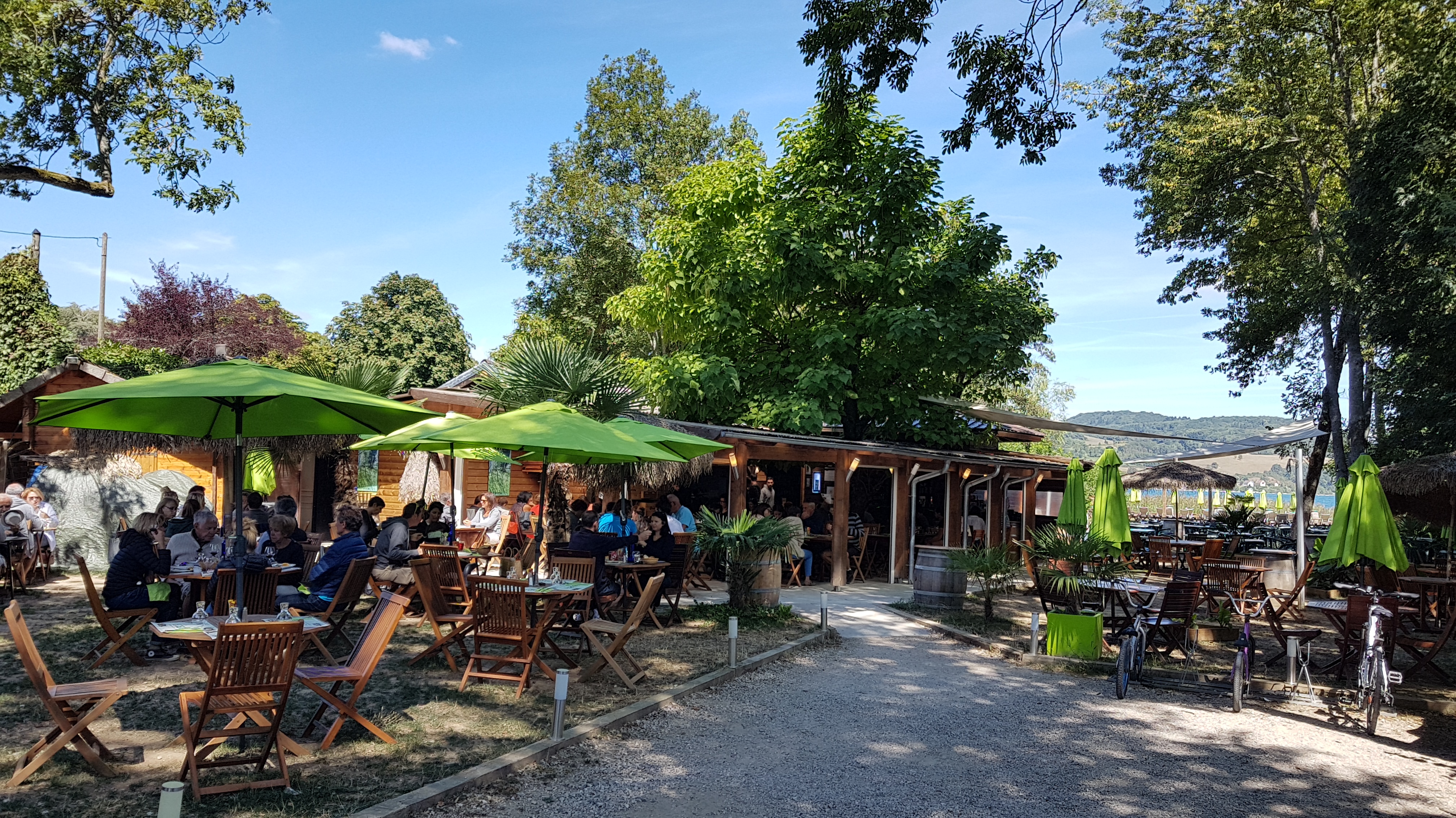 Prix excessifs, plats corrects mais service incompétent : ça refuse le paiement en plusieurs cartes, ça sert des verres en carton, et ça reprend le client de manière irrespectueuse lorsqu'il demande de l'eau. Accès au lac privatisé et payant, dommage car le cadre est intéressant.