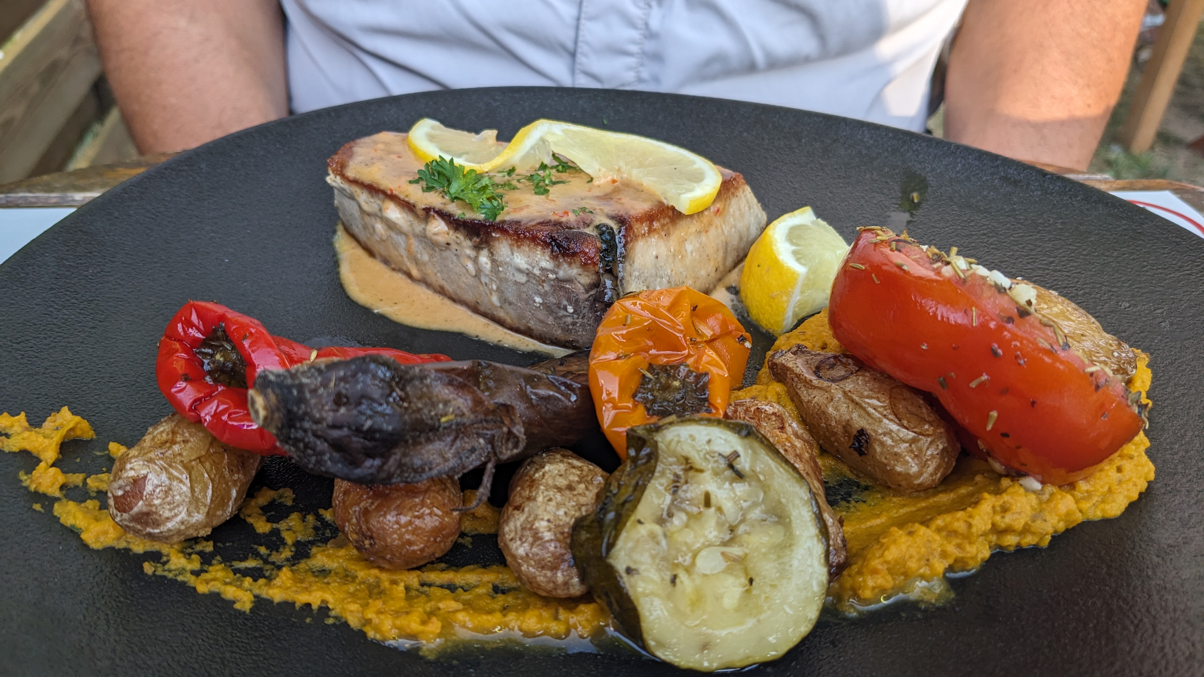 Lieu très agréable en soirée d'été. Très bon plat belle présentation. Personnel accueillant.