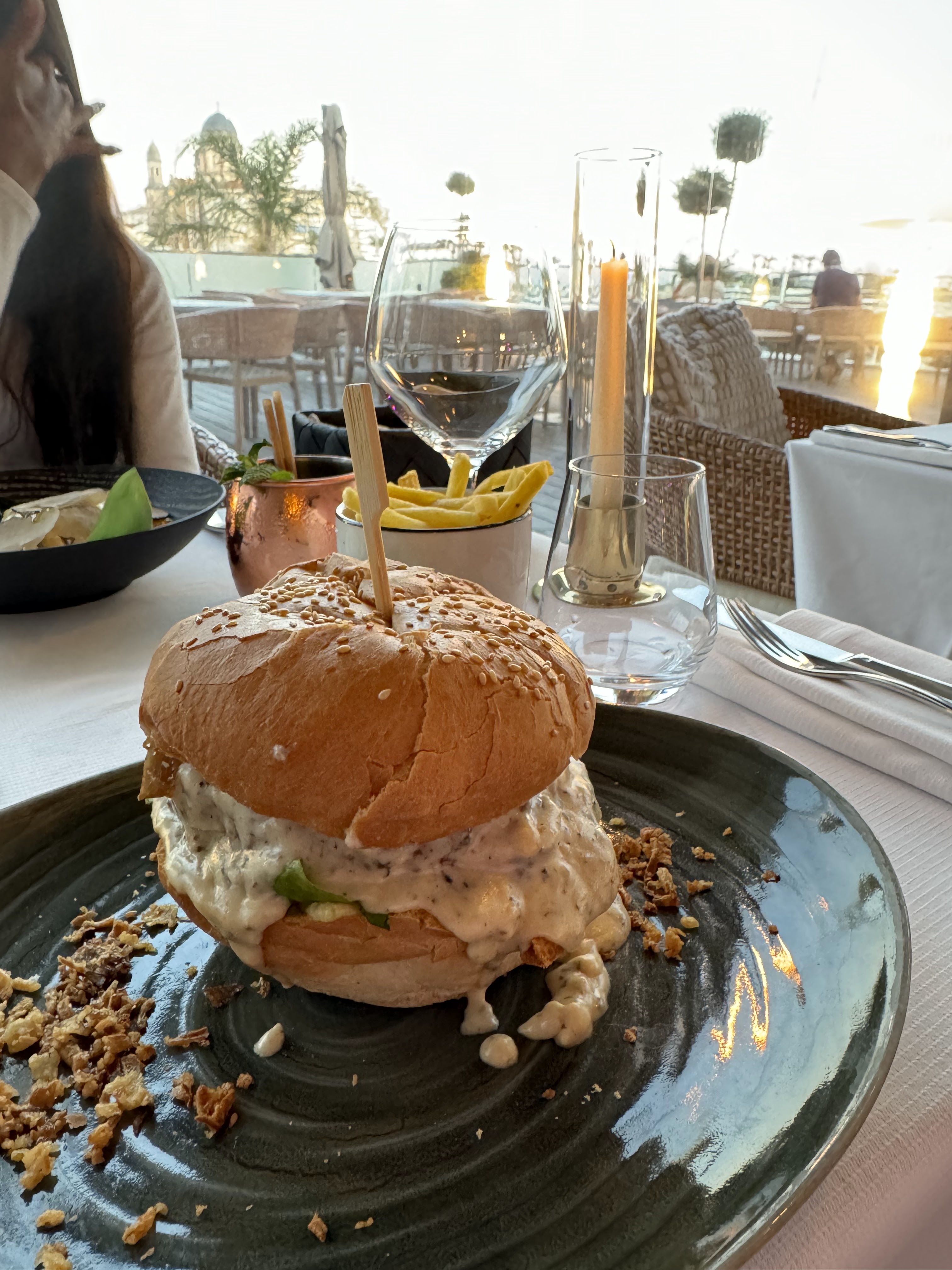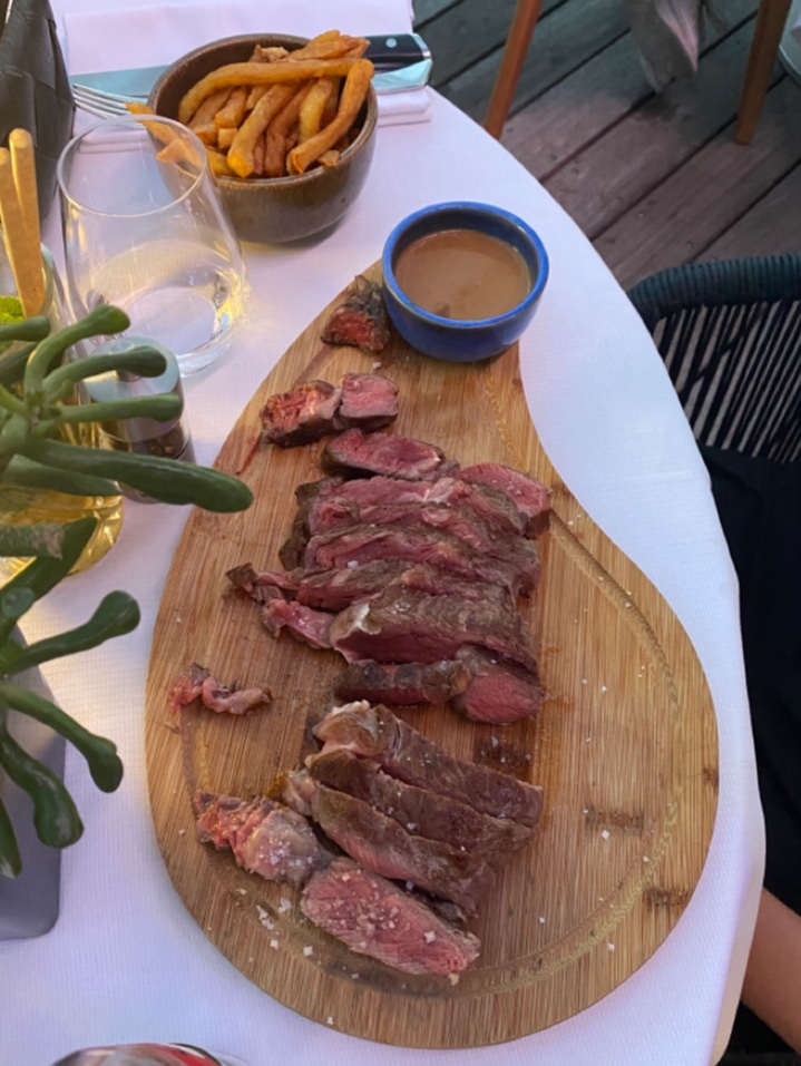 Bel endroit, assez classe, belle vue sur le port, belle infrastructures, personnel classe de belle présentation. Prix logiquement adaptés au lieu et a ce type d'établissement. Excellent tartare de boeuf, Frites les plus mauvaises que j'ai mangé de ma vie.. nul Salade césar juste passable. Cela ne devrait pas être ainsi pour un restaurant de ce niveau. Il faut réserver pour bénéficier d'une bonne table. Toilettes impeccables