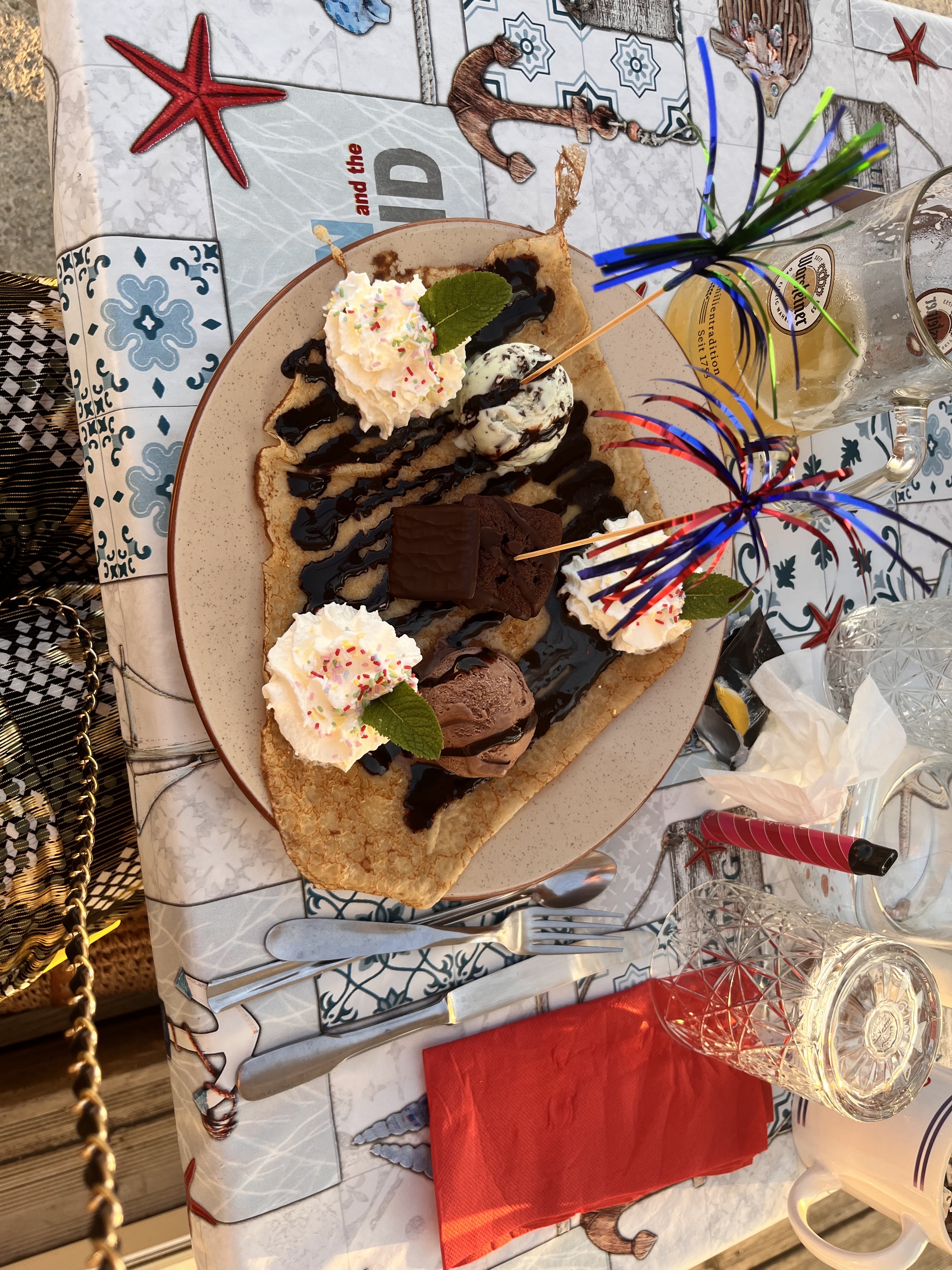 Superbe soirée entre amies. Crêpes délicieuses et copieuses. Très bon accueil, très souriant et agréable. Belle vue sur la mer avec un magnifique couché de soleil. Nous reviendrons vous voir.