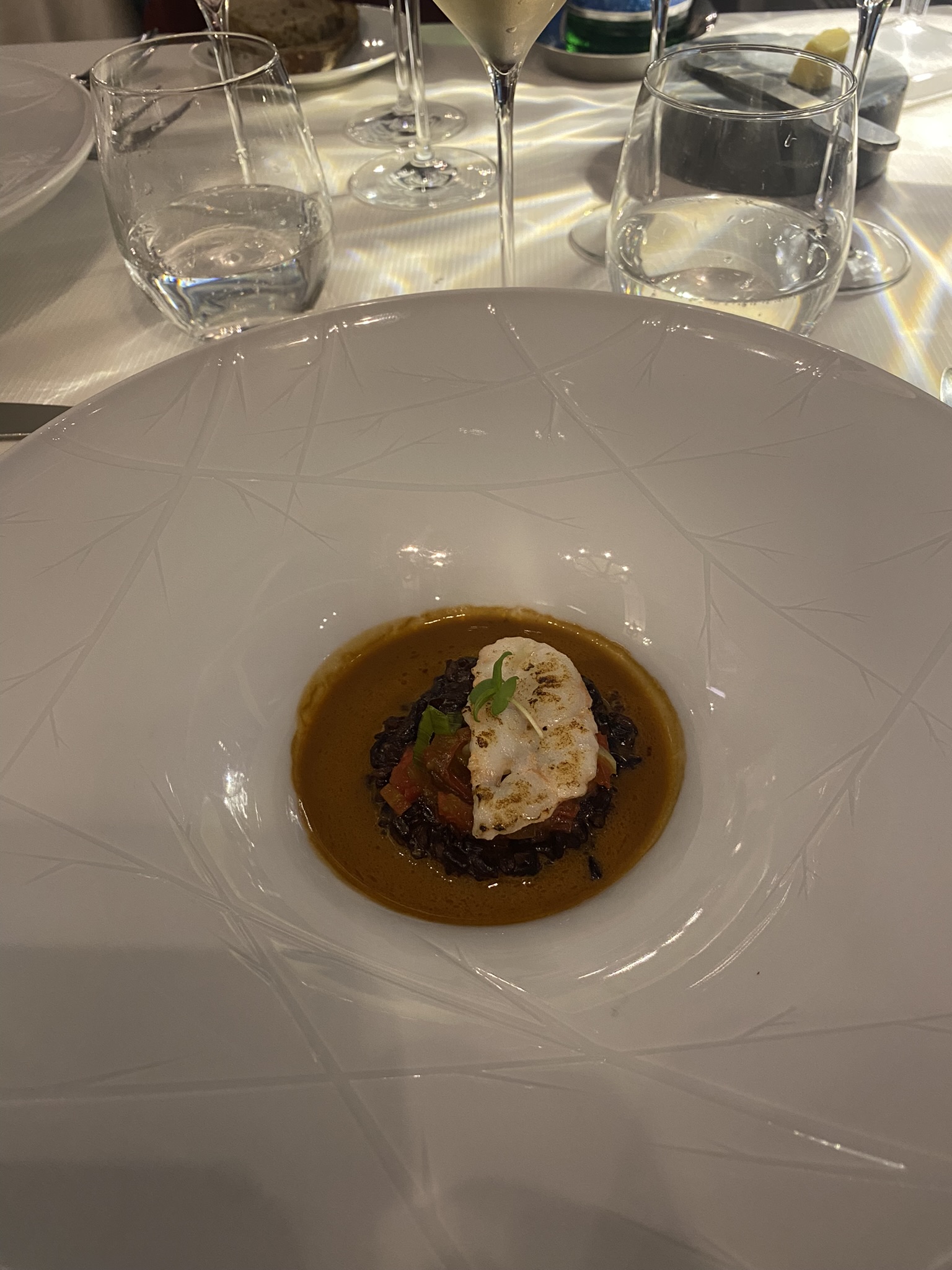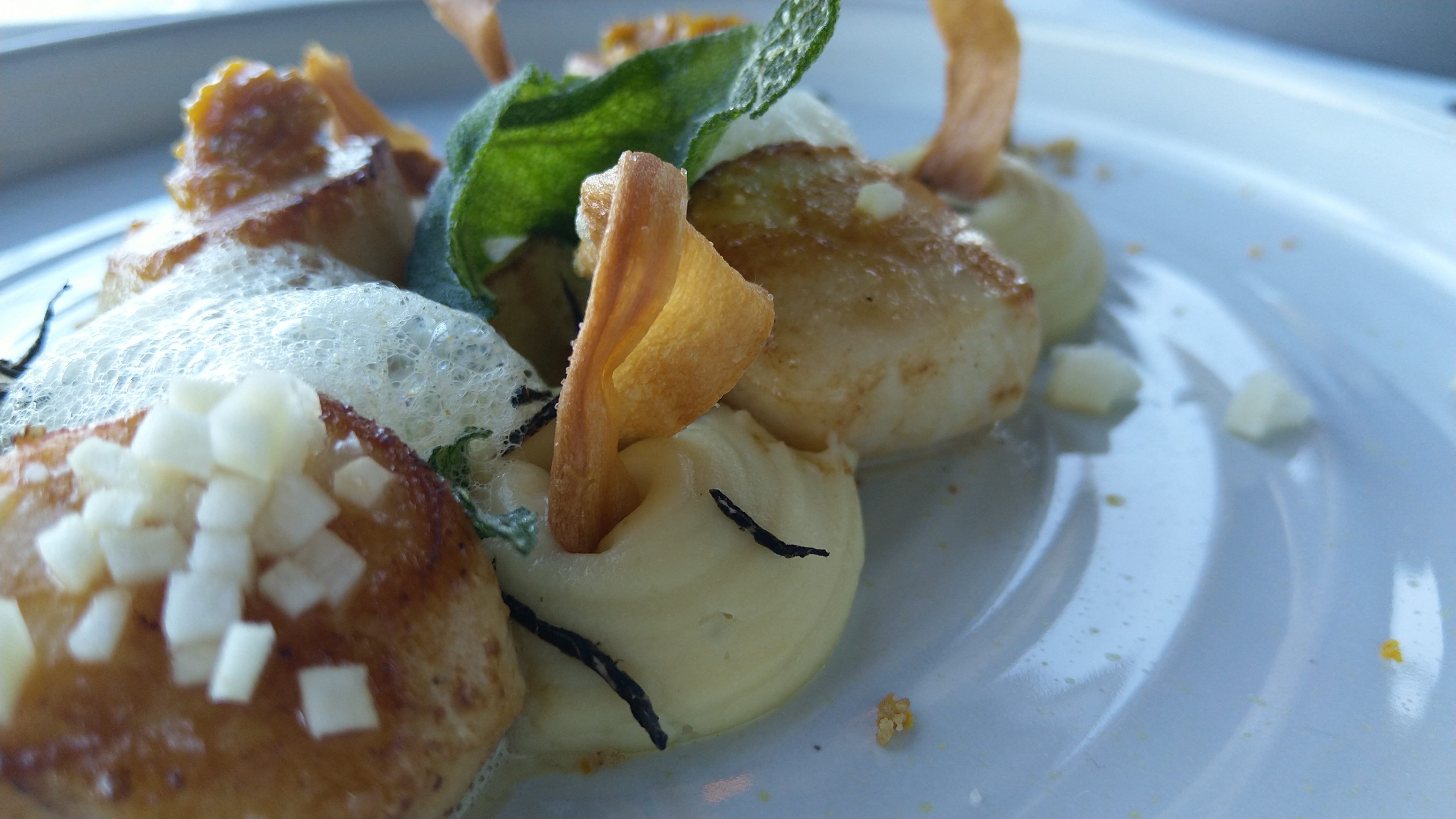 Un menu dégustation avec de beaux produits: st jacques, turbo, pigeon mais je n’avais pas l’appétit pour un long menu. A la carte, lotte, cochon, … bref RAS a des prix d’étoilé. Je choisi la sole … 68 € pour une petite sole de 20cm ! Cuisson ok mais fraîcheur et chaire pas au niveau du prix. On essaye de compenser avec amuses bouches, douceurs, mignardises et une purée aux truffes! J’imagine que ça marche pour une clientèle superficielle mais pas pour ceux qui ont l’expérience de bonnes maisons.