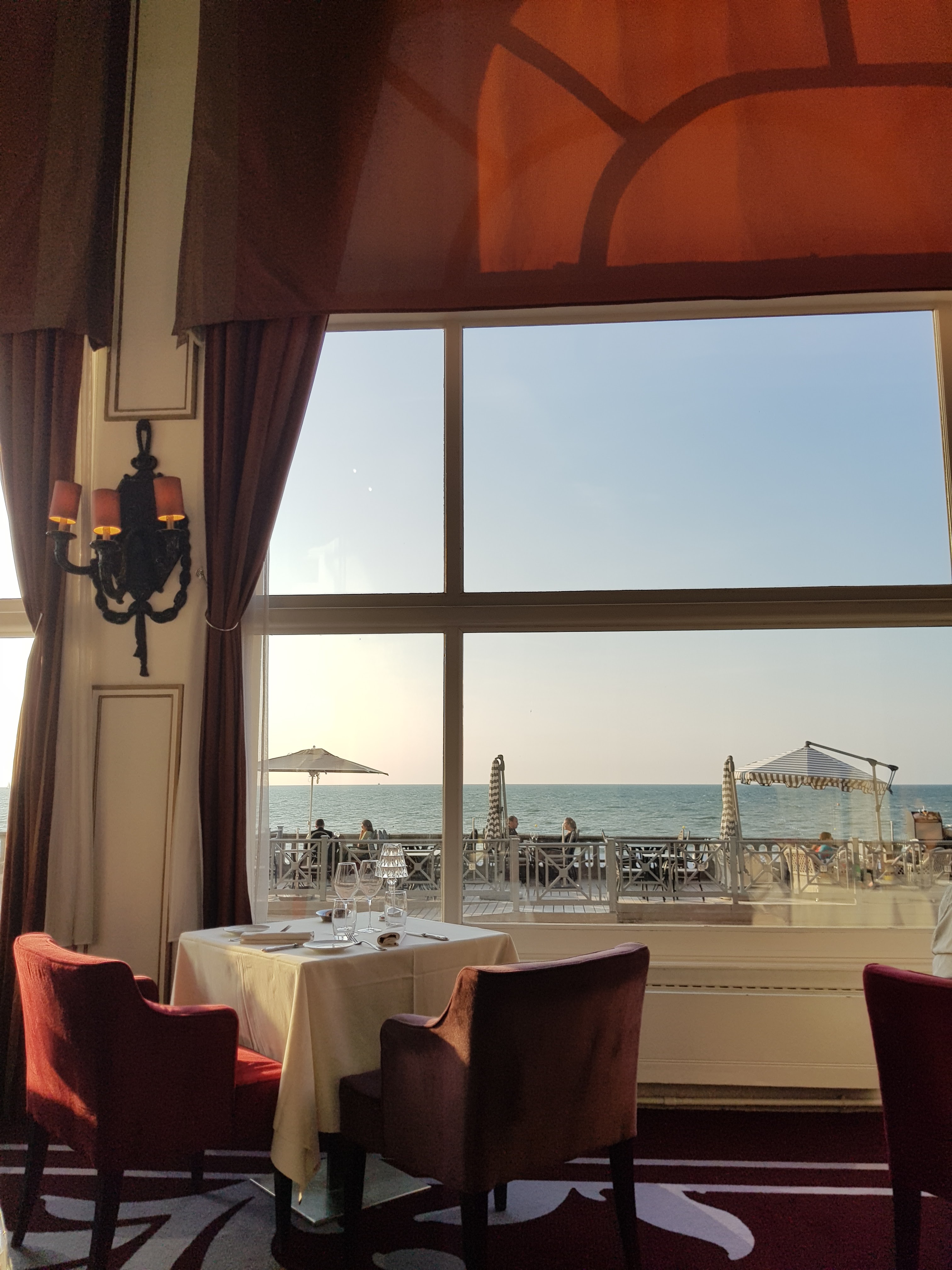 Un très bel étroit situé à l'intérieur du Grand Hôtel Cabourg. Vous dégusterez des mets face à la mer mer et si vous y dînez, vous aurez le privilège d'assister à un coucher de soleil époustouflant. La cuisine est raffinée et pleine de saveurs. Ayant goûté tous les plats de la carte je vous conseille l'œuf BIO et le pigeonneau. Un bon restaurant qui saura ravir les papilles de plus fins gourmets.