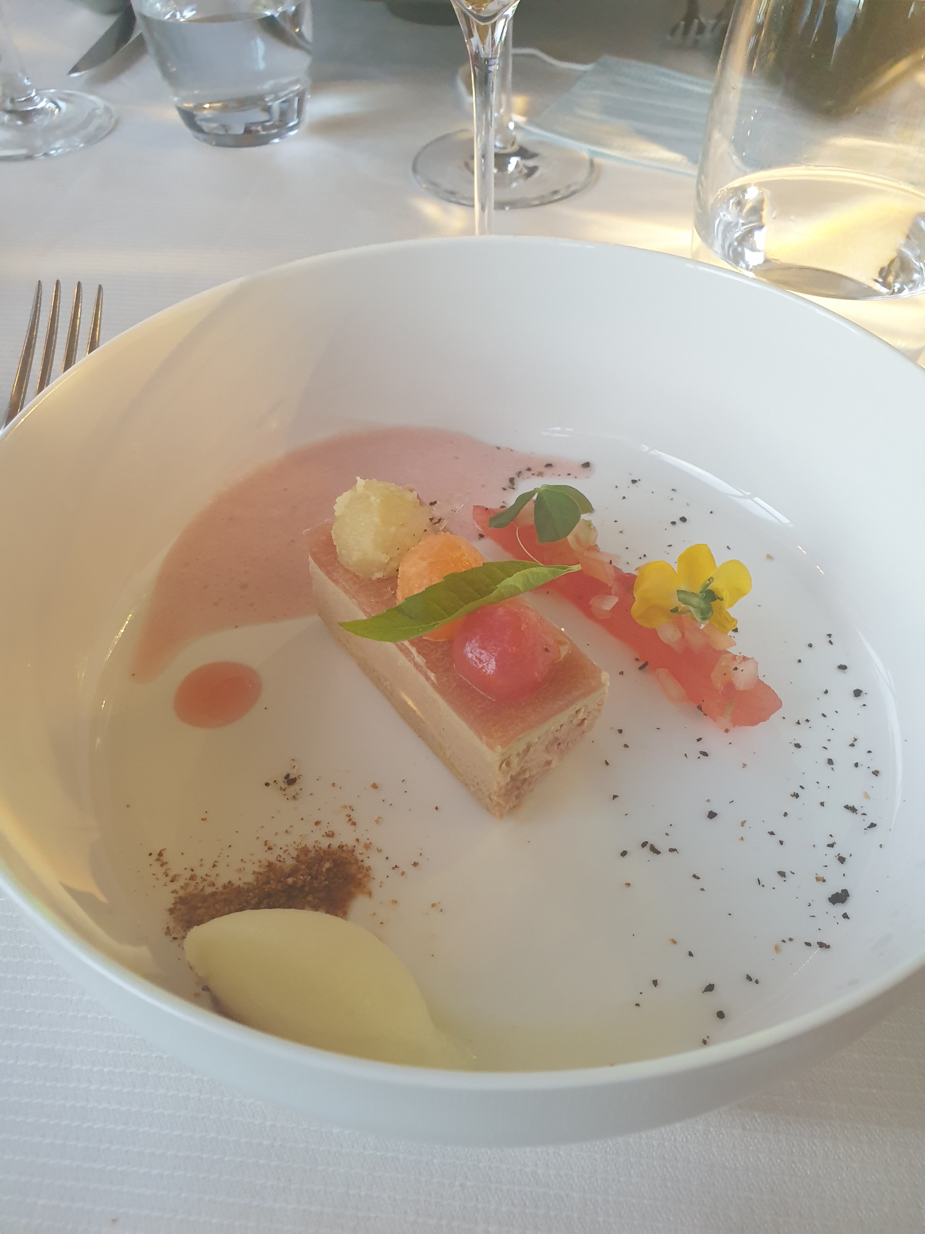 Si j’ai mis 1 étoile c’est pour le décor .On à l’impression de s'être bien fait avoir ,nous étions 5 en famille le foie gras était une émulsion dans laquelle on ne pouvait rien reconnaître, à force de mélanges , la sole qui suivait 2 bâtonnets par assiette de 4 cms sur lesquelles étaient parsemés de quelques herbes rien à côté et mangés plus vite que la serveuse ne nous épelle ce que contenait la façon de cuire etc...... Un dessert sophistiqué mais n’ayant rien de plus .Entre les plats 3/4 d’heures d’attente alors que nous étions au dernier service avec plus personne dans la salle .J’ai invité ma famille pensant vraiment faire plaisir à tous ...Non là vraiment je croyais que cette cuisine style minimaliste avait fait son temps .On était près à aller manger ailleurs après.