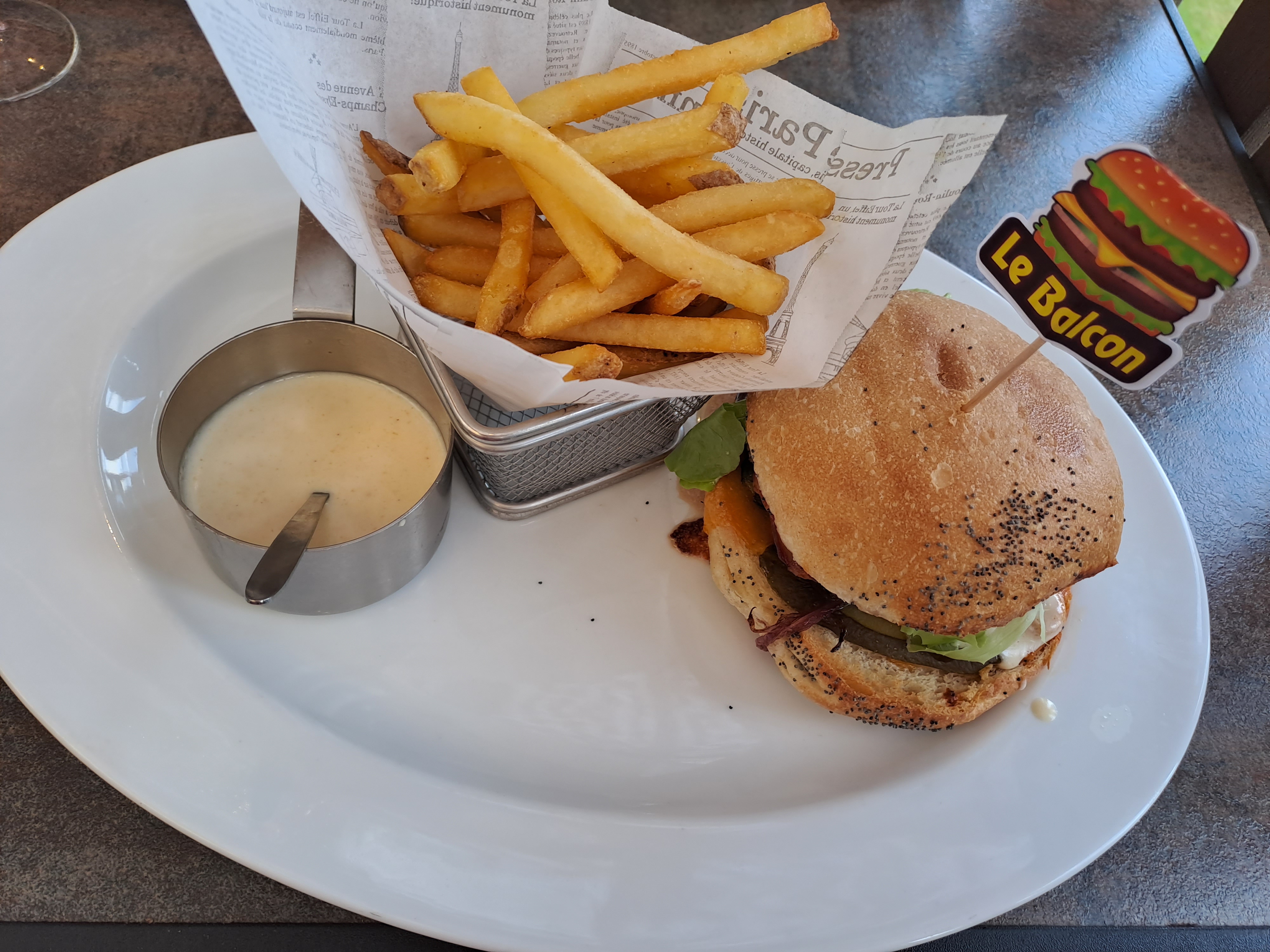 De passage dans la région je vous recommande vivement de vous arrêter au balcon. De l’accueil téléphonique à l’addition le personnel est souriant et professionnel . Nous avons mangé Le burger qui était de très bonne qualité que ce soit le pain les ingrédients et les frites rien été à mettre de côté Tout ça pour une note très raisonnable. Un grand bravo à toute cette équipe et surtout merci.