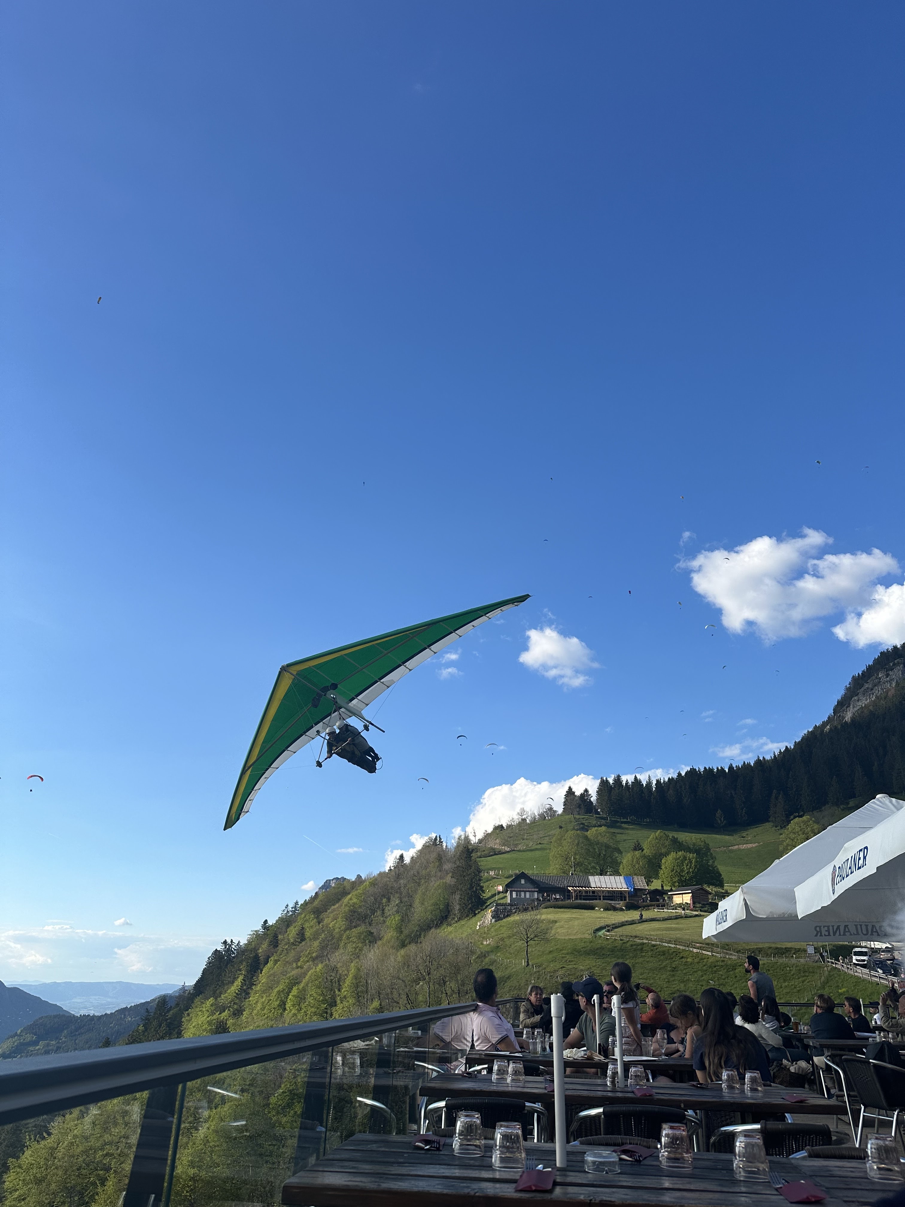 Restaurant avec une vue magnifique sur le lac d'Annecy. Nous avons pu mangé en observant les vols en parapente. Magnifique 😍. Cuisine et serveurs au top. Je recommande