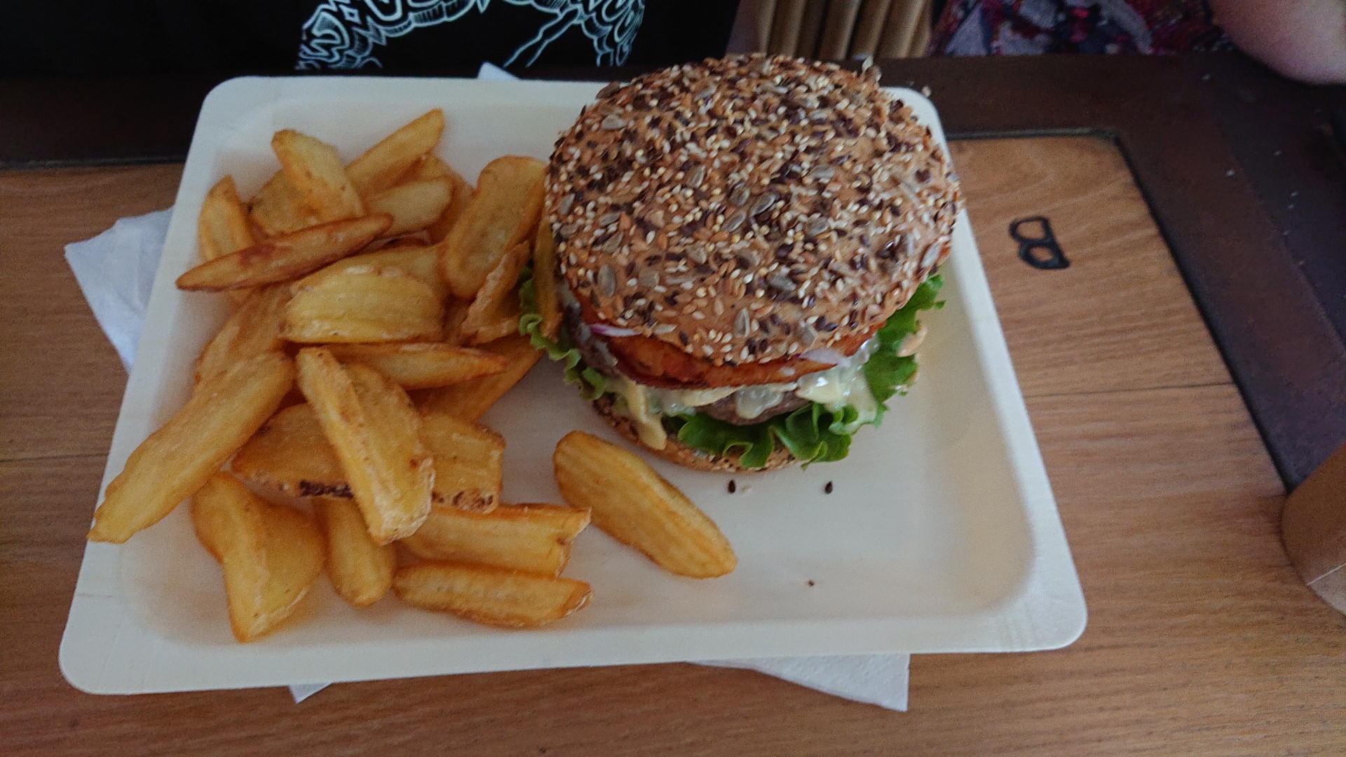 Burgers et frites excellents, cependant je pense qu'un aliment n'était pas frais car gros mal de ventre pendant une heure après avoir mangé... La terrasse est assez petite, et la foule qui passe à côté devient rapidement agaçante... Cependant l'équipe qui gère le resto est très sympa, merci à eux.
