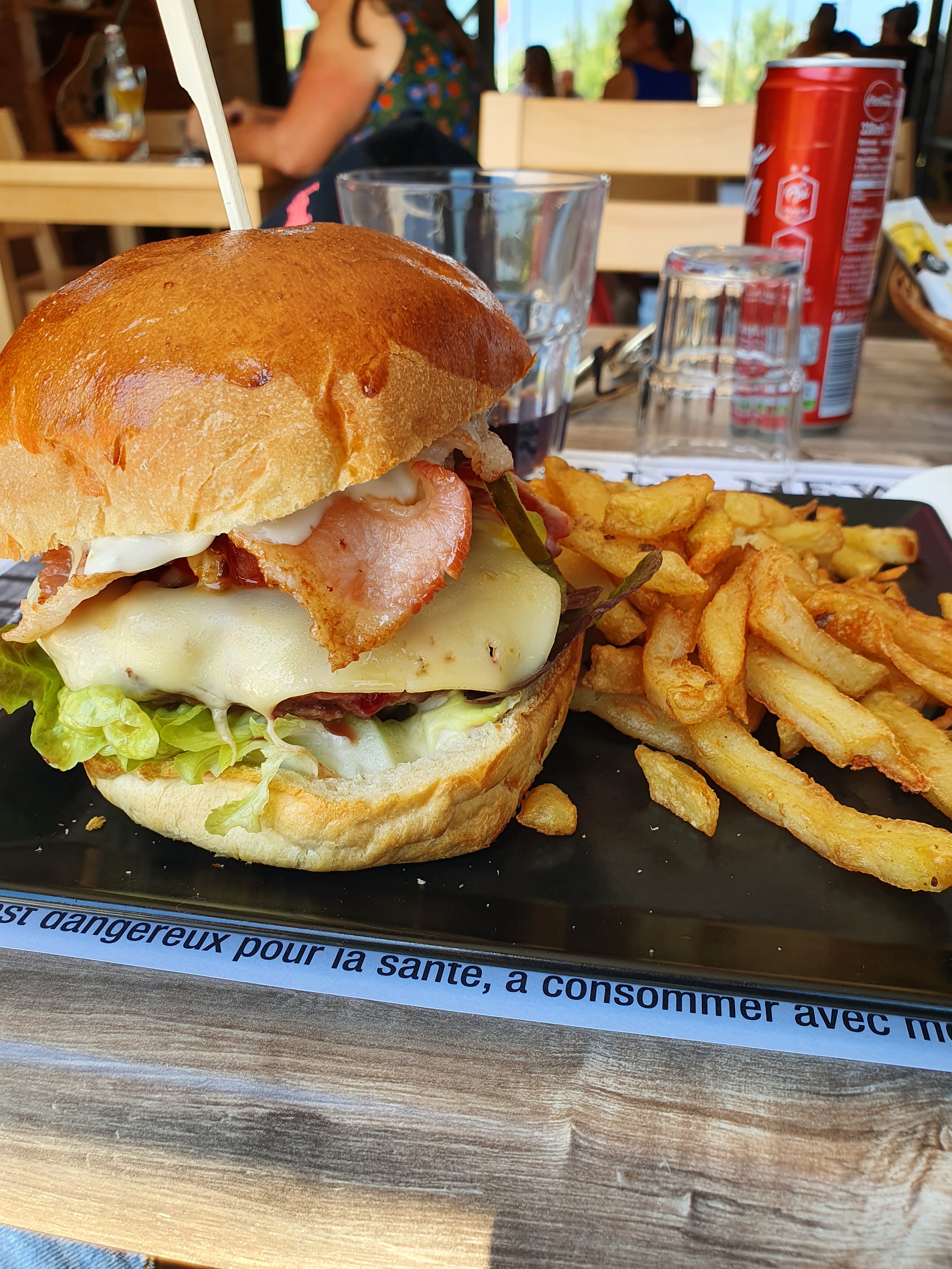 Je vous recommande de réserver s’il fait beau et que vous comptez arriver tard, nous avons donc du prendre à emporter. L’accueil est agréable et la déco sympas. Le service a été rapide. Le burger « Meuh » façon normande est très bon. Le poulet croustillant est bon mais la panure manque cruellement d’assaisonnement car inexistante, idem pour les frites où il y a 0 assaisonnement, cependant elles sont malgré tout assez bonne malgres le manque de croustillant et d’assaisonnement.