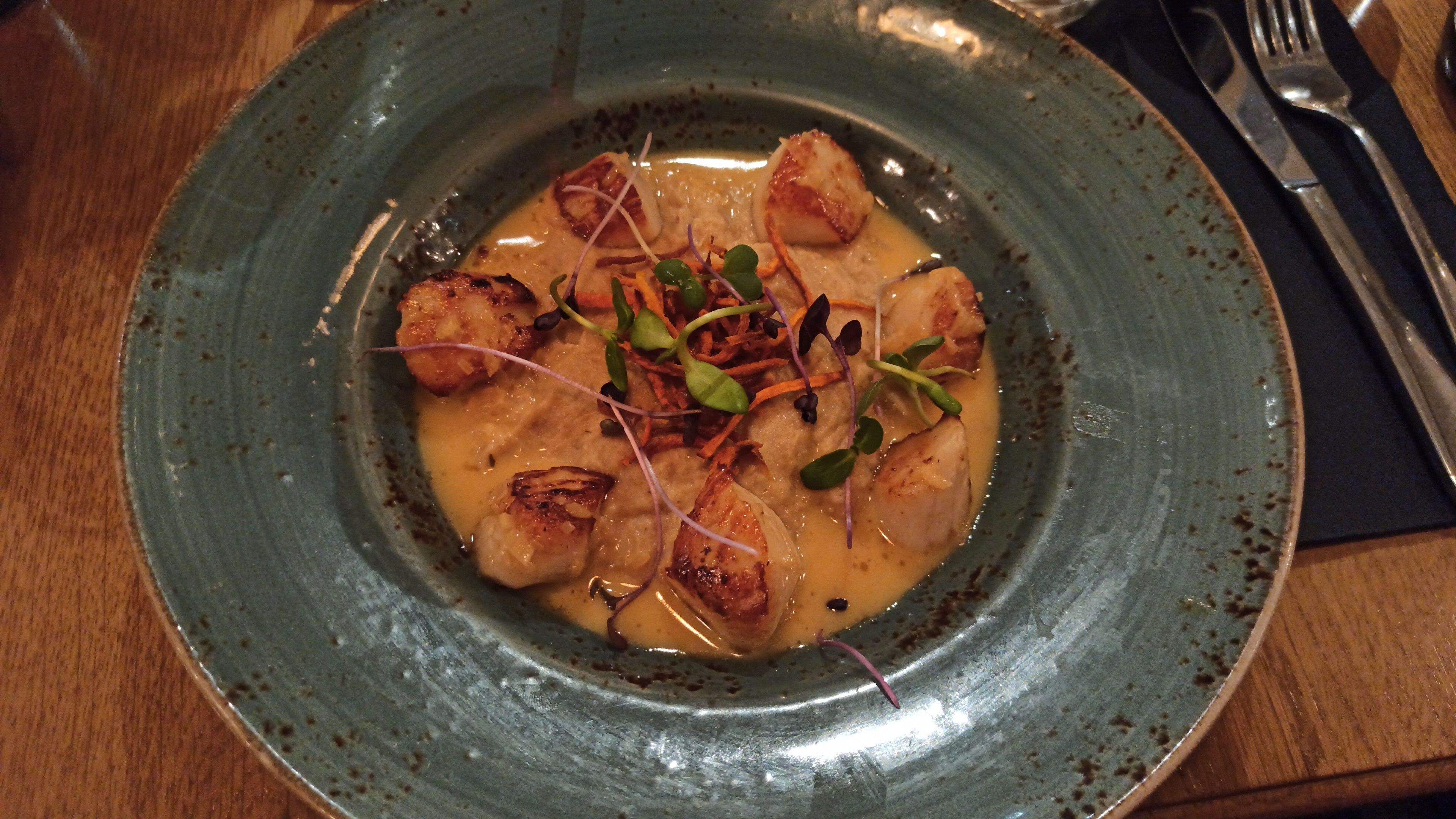 Ambiance chaleureuse et cosy pour ce restaurant qui propose peu de plats, gage de fraîcheur. Les entrées sont délicieuses et très bien présentées. Seul bémol au repas, les plats sont moyens. Nous n'avons pas pris de dessert. Café offert après signalement des pdt grenailles baignant dans l'huile. Le plus, le serveur au petit soin.