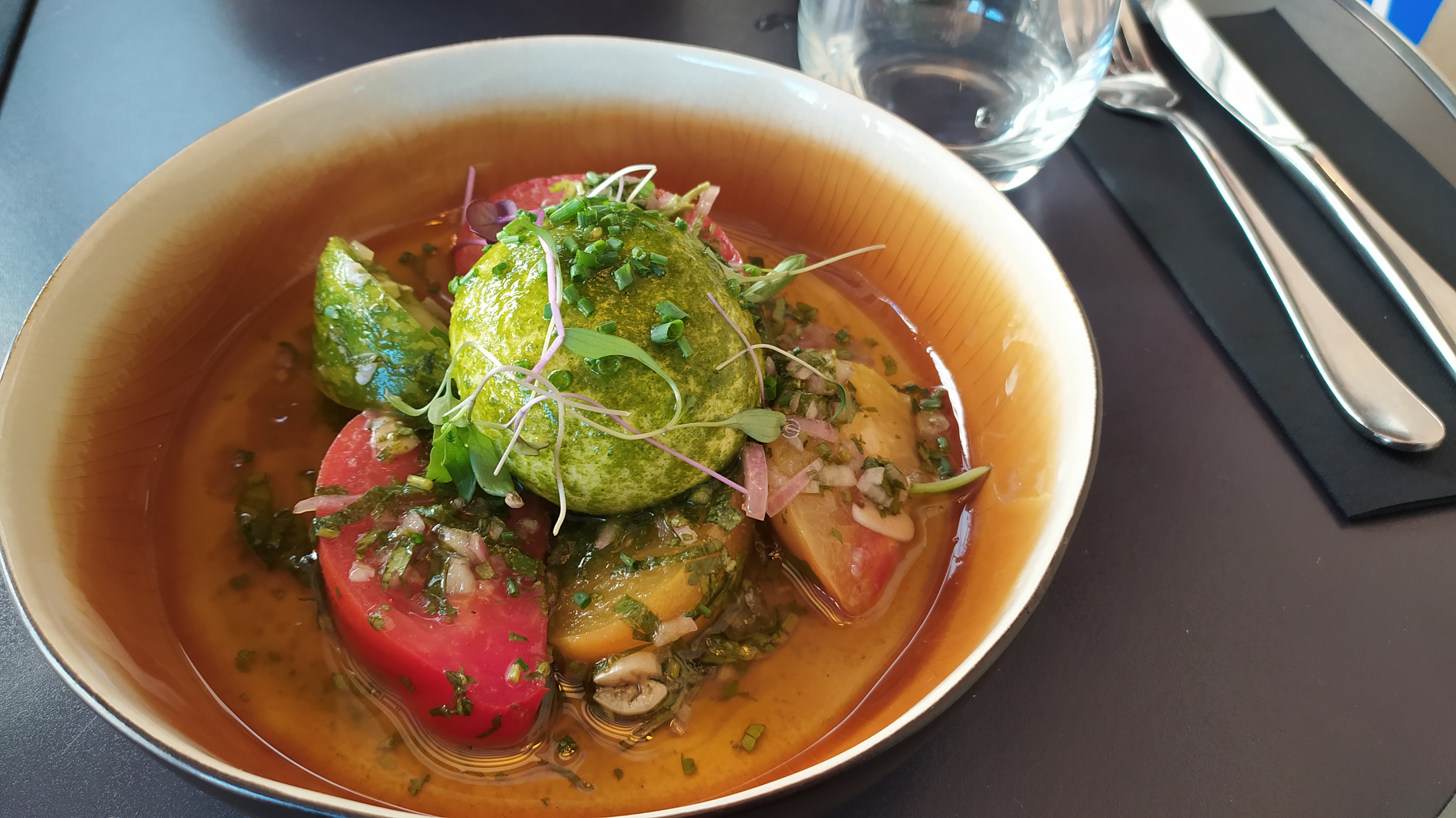 Un excellent repas du début à la fin, avec des assiettes soignées et généreuses, serveurs au top et de bons conseils, et une superbe salle, vivement les beaux jours pour profiter de la terrasse pleine de promesses !
