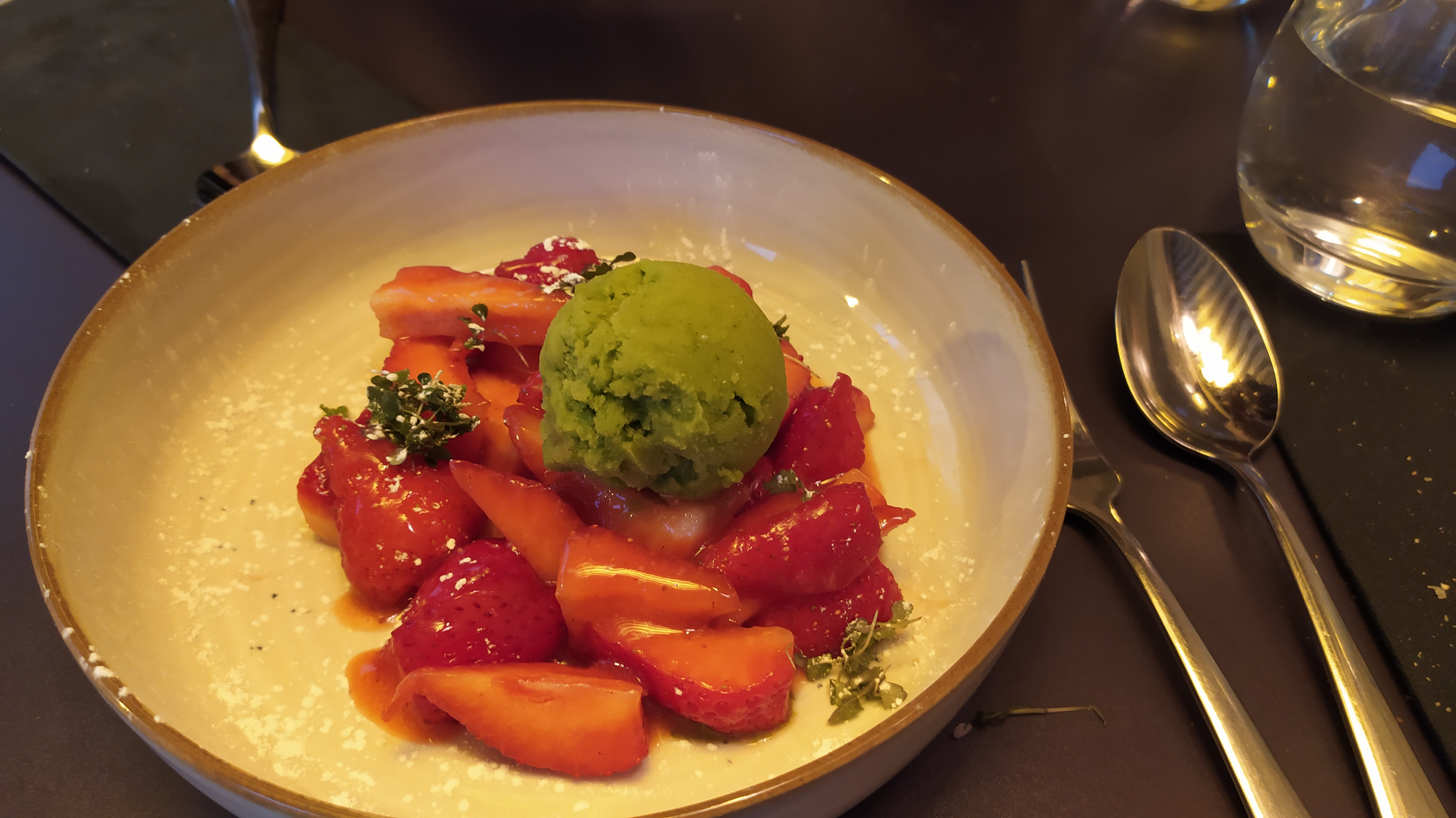 Superbe expérience ! Les plats sont pleins de saveurs. De l'entrée au dessert, tout était très bon. Mention spéciale pour le dessert à la fraise avec le sorbet menthe citron qui est délicieux et qui rafraîchit en fin de soirée ! Et évidemment, le service était parfait. Le personnel, très accueillant et à l'écoute.