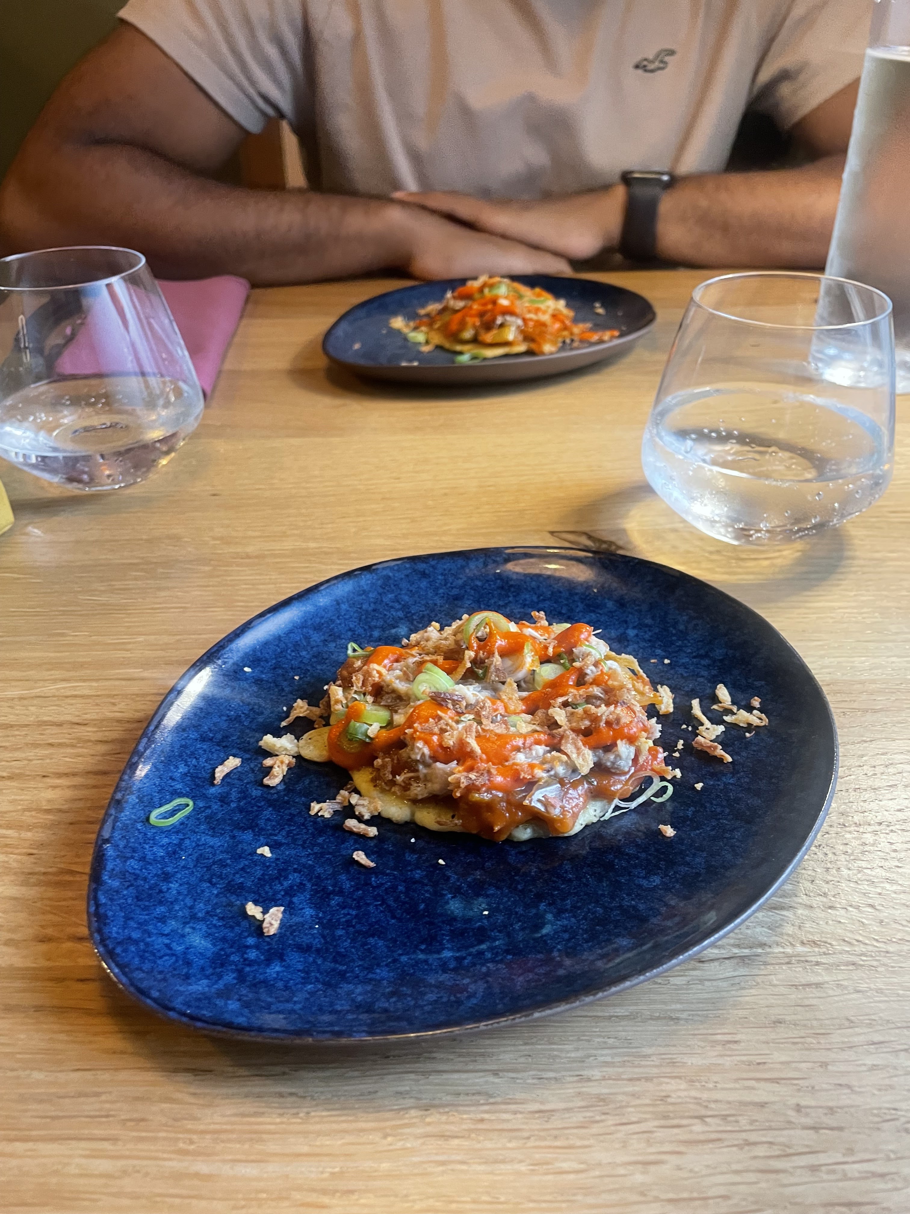 Des combinaisons de saveurs très savoureuses et inattendues. J'ai eu la chance de passer un lundi à midi, sans réservation, et de m'asseoir. Les serveurs étaient très attentifs et serviables, répondant aux questions et recommandant des vins. Je n'ai pris qu'un seul shot de mon porc mijoté servi sur une purée de carottes au wasabi, mais je suis sûr que vous comprendrez l'idée 😉. Complètement recommandé, super expérience!