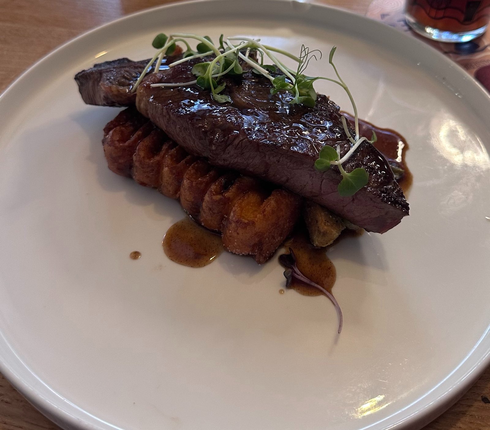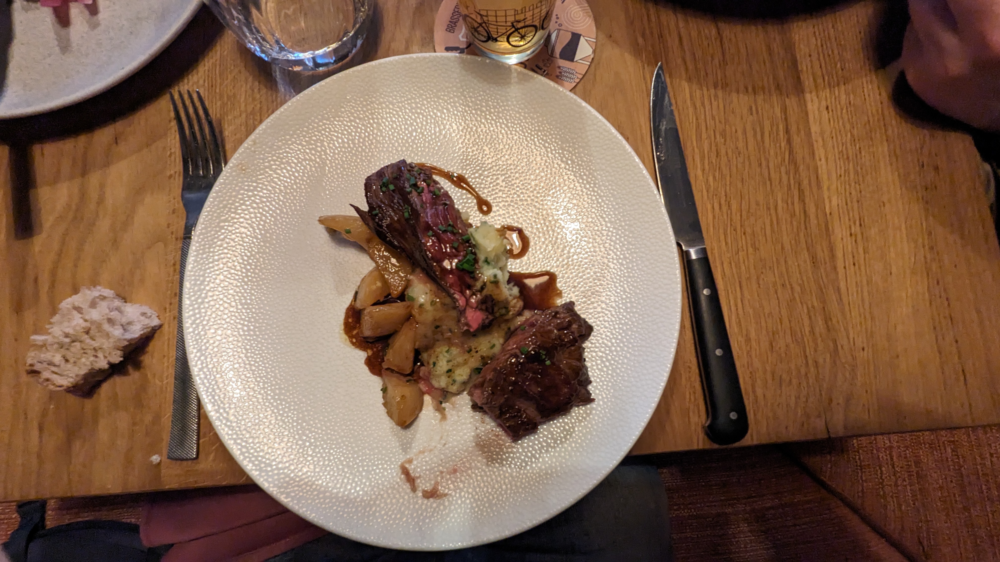 Un des meilleurs steaks que j'ai goûté ! Le bœuf était cuit à la perfection, tendre, juteux et savoureux. Bonne nourriture, excellent service!