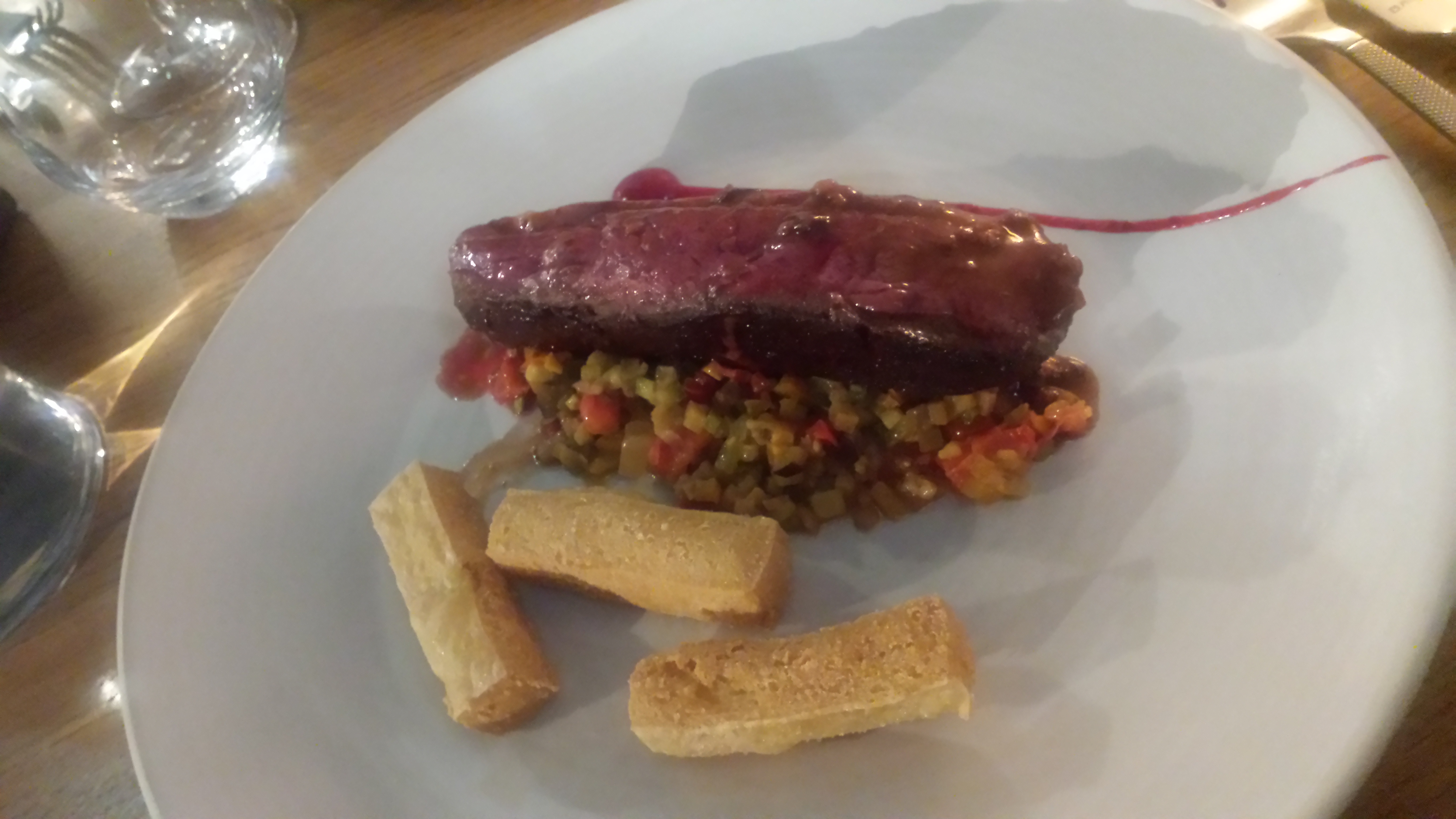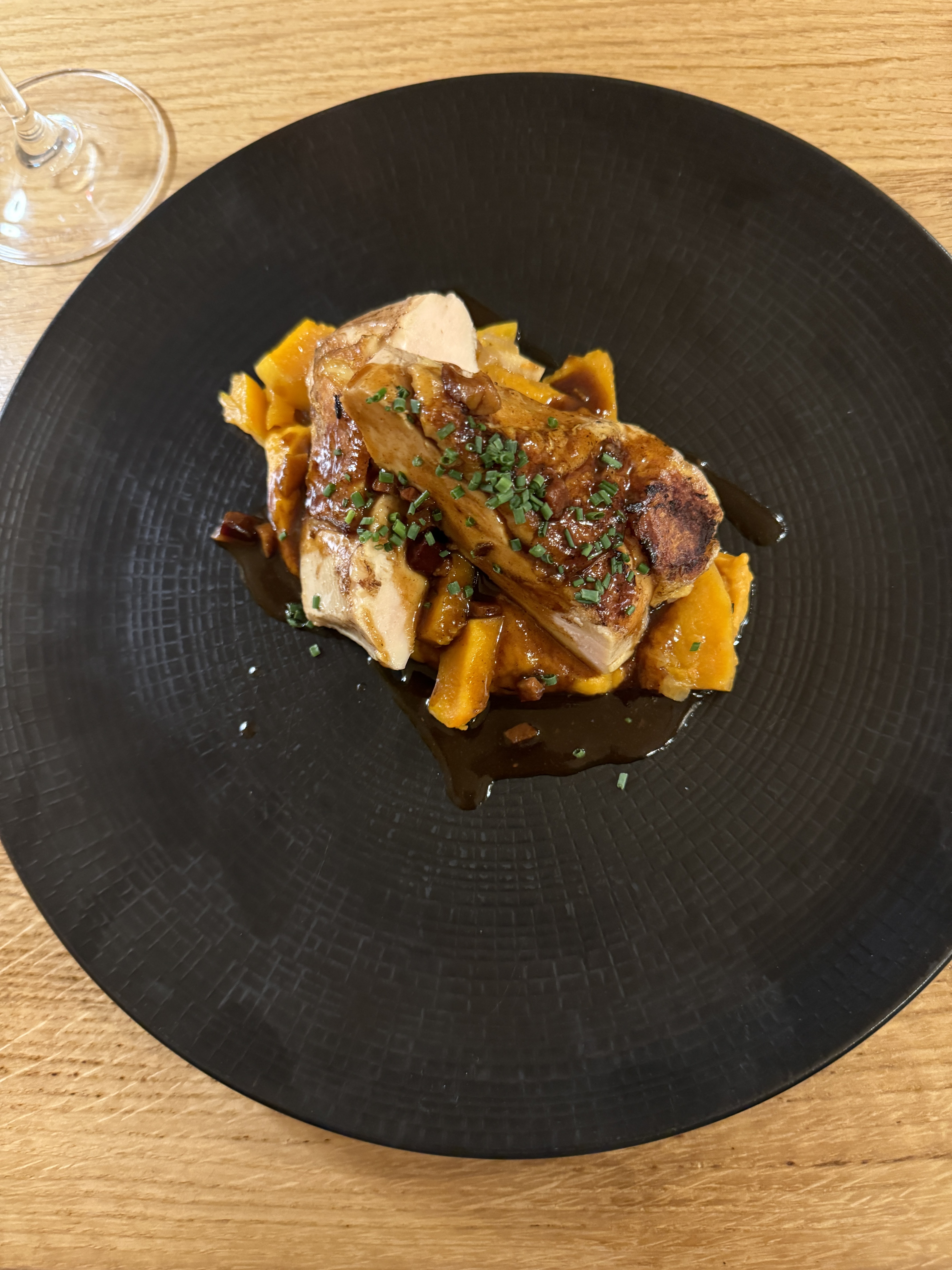 Bien, mais… Service très attentif. Des plats qui laissent place à la créativité. Toutefois, des petites imperfections qui font que l’on sort du restaurant un peu mitigés: foie gras pas assez bien dénervé avec une tranche de brioche toastée mais grasse, poulet de Bresse servi tiède mais corrigé très rapidement à notre demande , la sauce des saint-Jacques très salée… Et pour sortir, un gros nuage de fumée plane au-dessus de la cuisine. Bref, en soirée, le repas semble un peu cher pour ce qui est servi: près de 68€ par personne pour un apéritif, un verre de vin, une entrée et un plat.