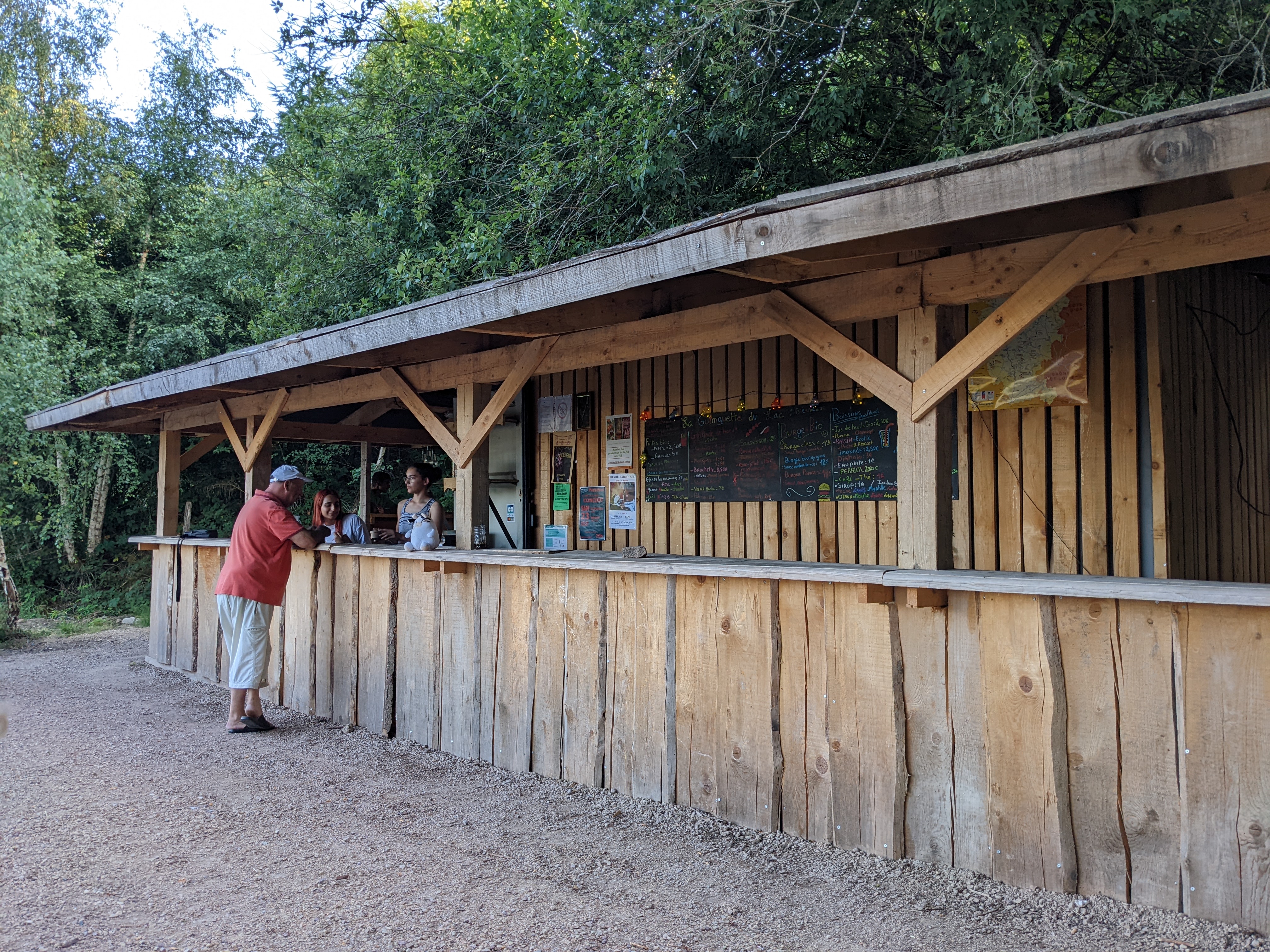 Après un tour du lac de saint aignan nous avons pu nous désaltérer et nous restaurer en toute simplicité. Accompagné de nos 2 chiens cela n’a pas posé de soucis. Service rapide avec le sourire, nous avons passé un très bon moment. Seul ombre au tableau beaucoup de produits affichés n’étaient pas disponibles ( pas de burger, pas de poitrine grillée, et encore quelques autres absences…), cela a restreint le choix. Je vous conseille tout même ce lieu.