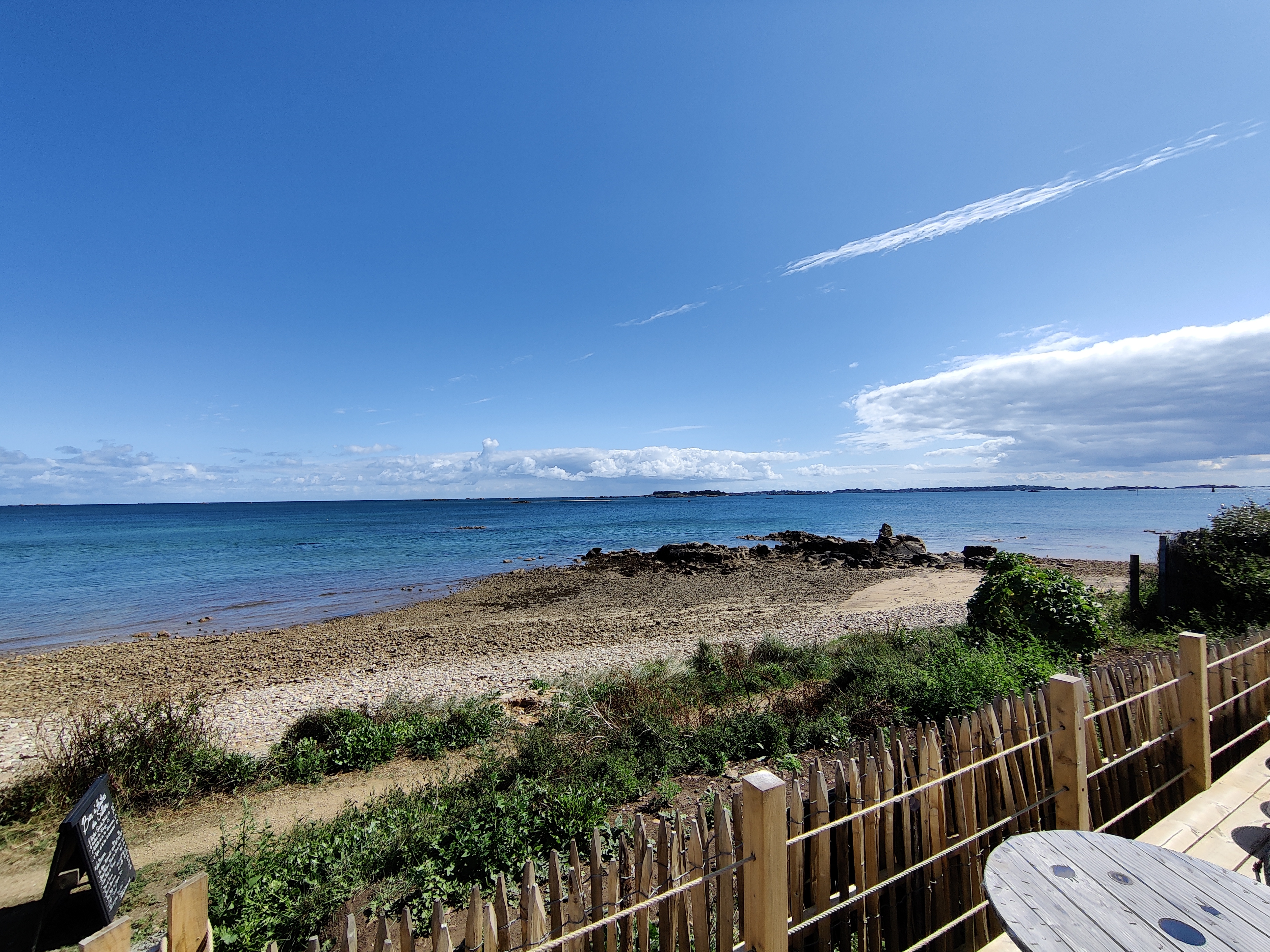 Même sous le ciel gris c était très chouette.accueil chaleureux vue magnifique. Peut être que le fléchage pourrait être amélioré . Les huîtres de brehat étaient excellentes .Le vin aussi.